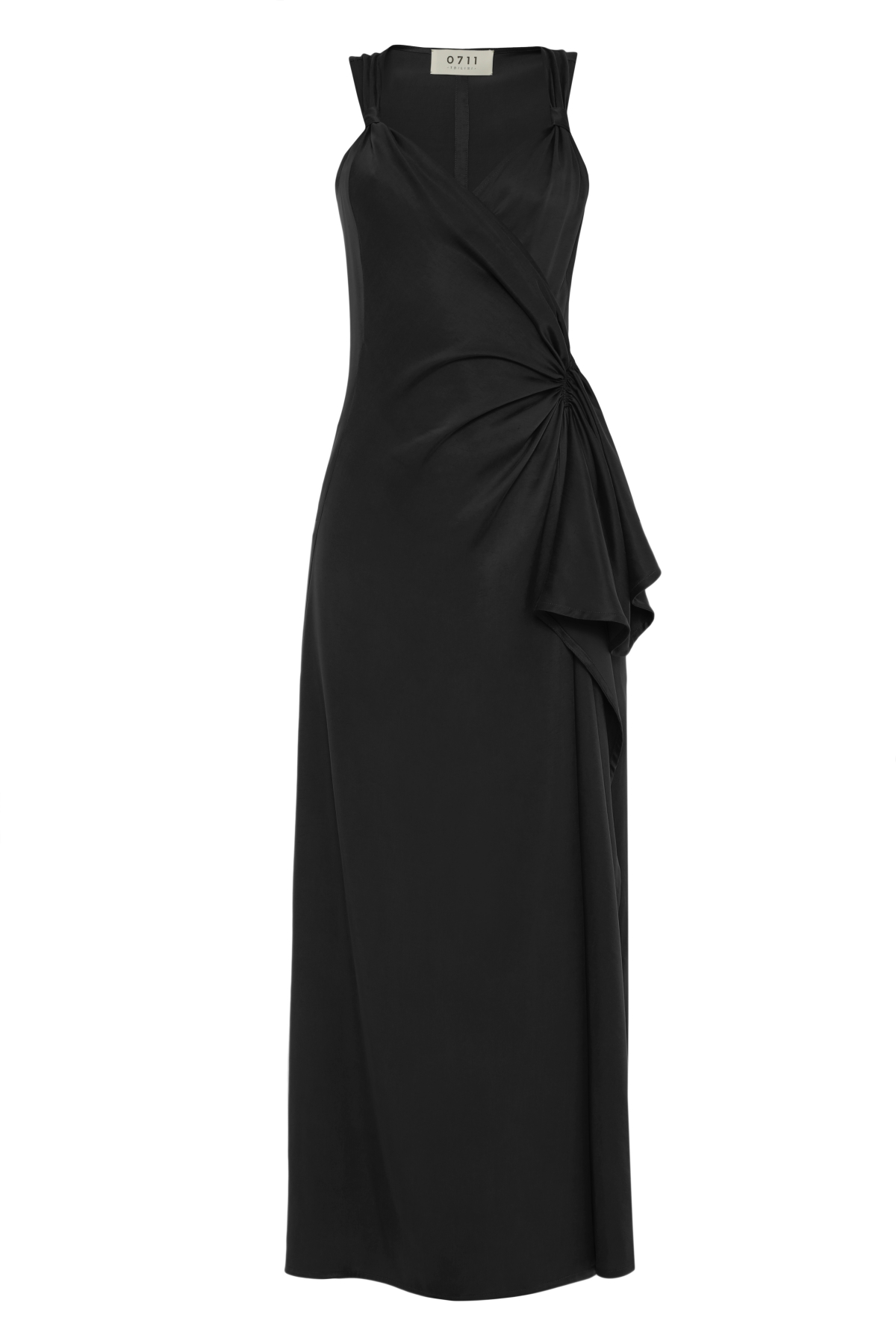 Combining contemporaneity with a vintage-inspired wrap silhouette, 0711 Black Midi Dress is a masterclass in modern romanticism. boasting sleeveless profile, the key feature of this piece is artfully draped waist which fastens with a magnetic snap. Apart from that, the number also stands out with frame-accentuating, cinched in slim fit which once again highlights the brand’s innate understanding of glamour and femininity.