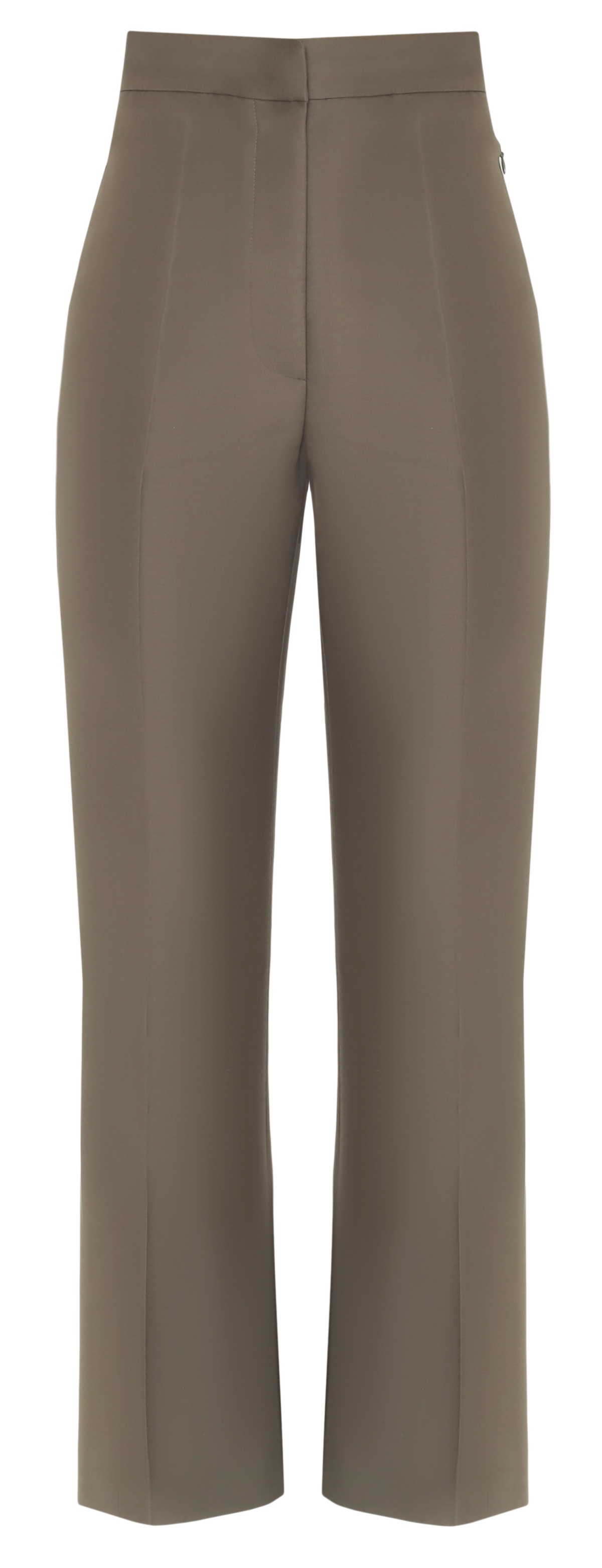 Low Classic presents Khaki Trousers as a tribute to simplicity and understated elegance. Cut from wool blend silk, the pair features flare end straight leg silhouette which is elevated with creased pleats and slit details in order to give the piece an extraordinary twist.