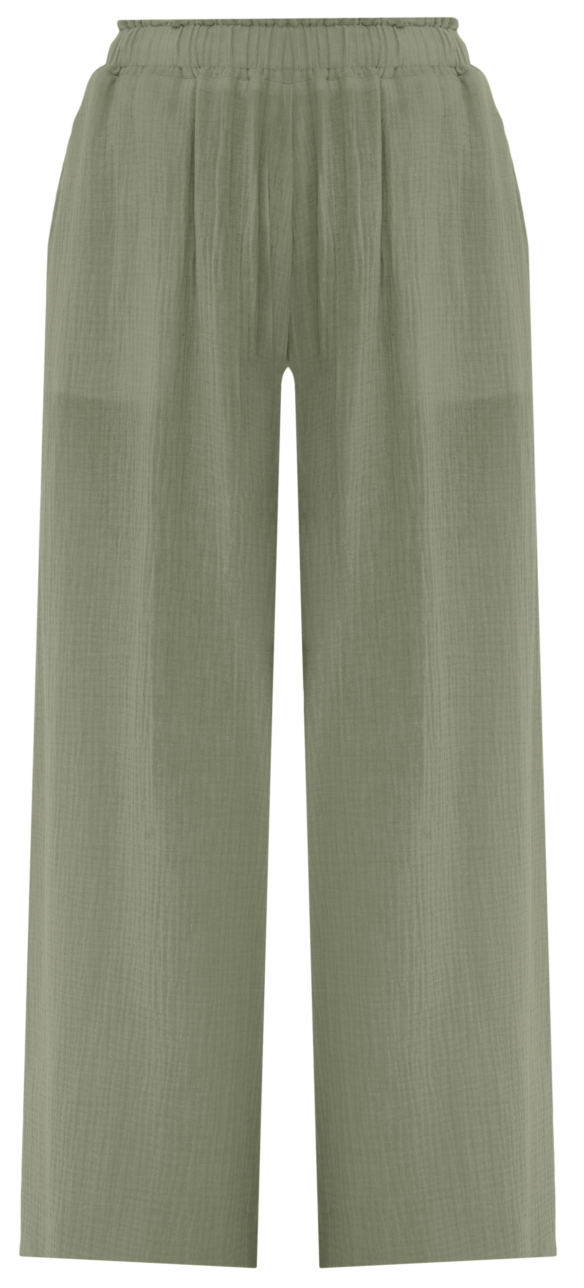 Bamboo Green wide leg pants which feature elasticated waist along the side slit pockets.
