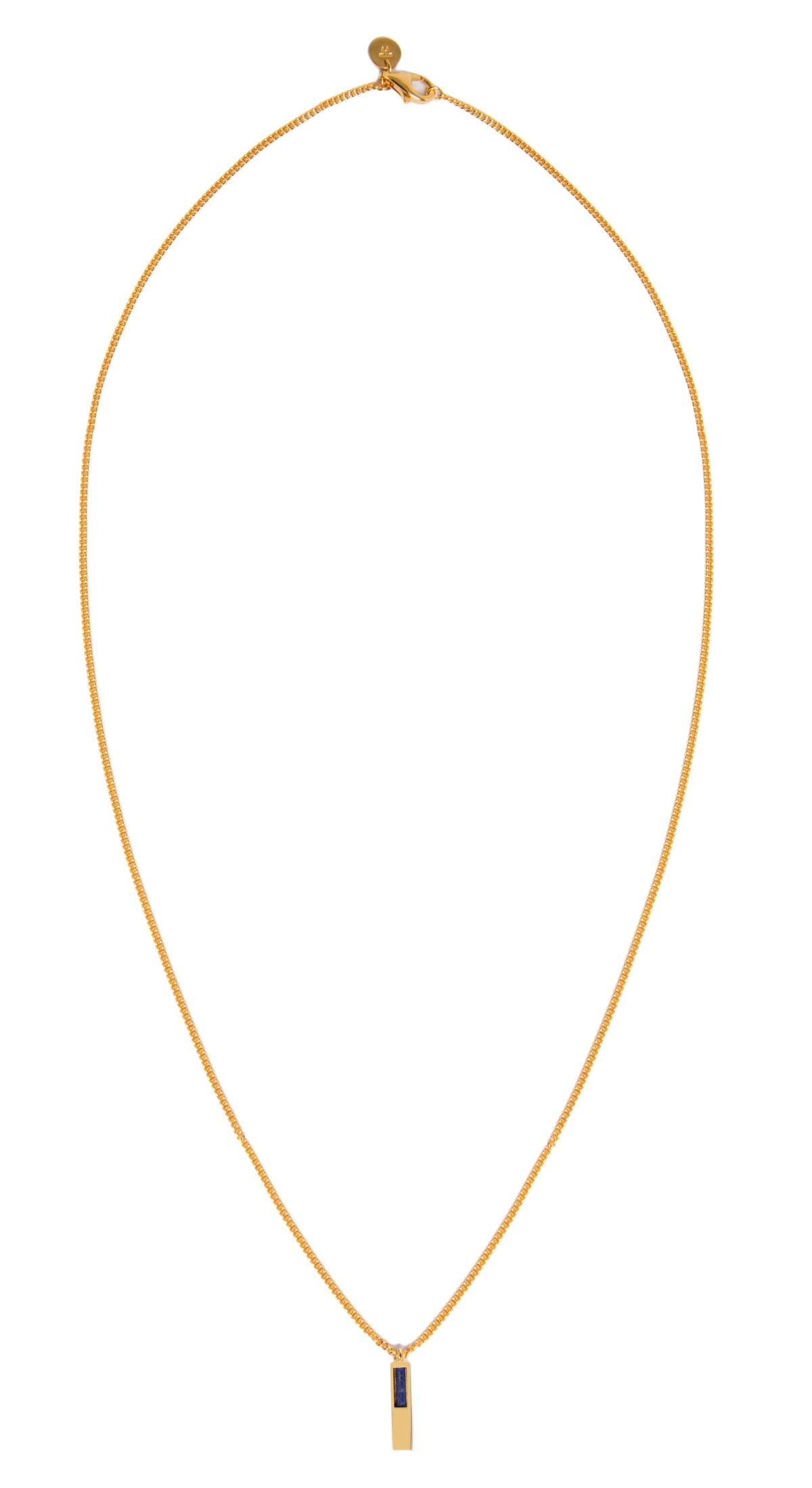 As an ode to Nordic minimalism, Tom Wood’s Cube Pendant forefronts simplicity and functionality. Made from gold-plated sterling silver, cut out rectangular pendant displays Lazuli stone and is suspended from a slinky chain necklace that is punctuated with logo-engraved lobster closure.