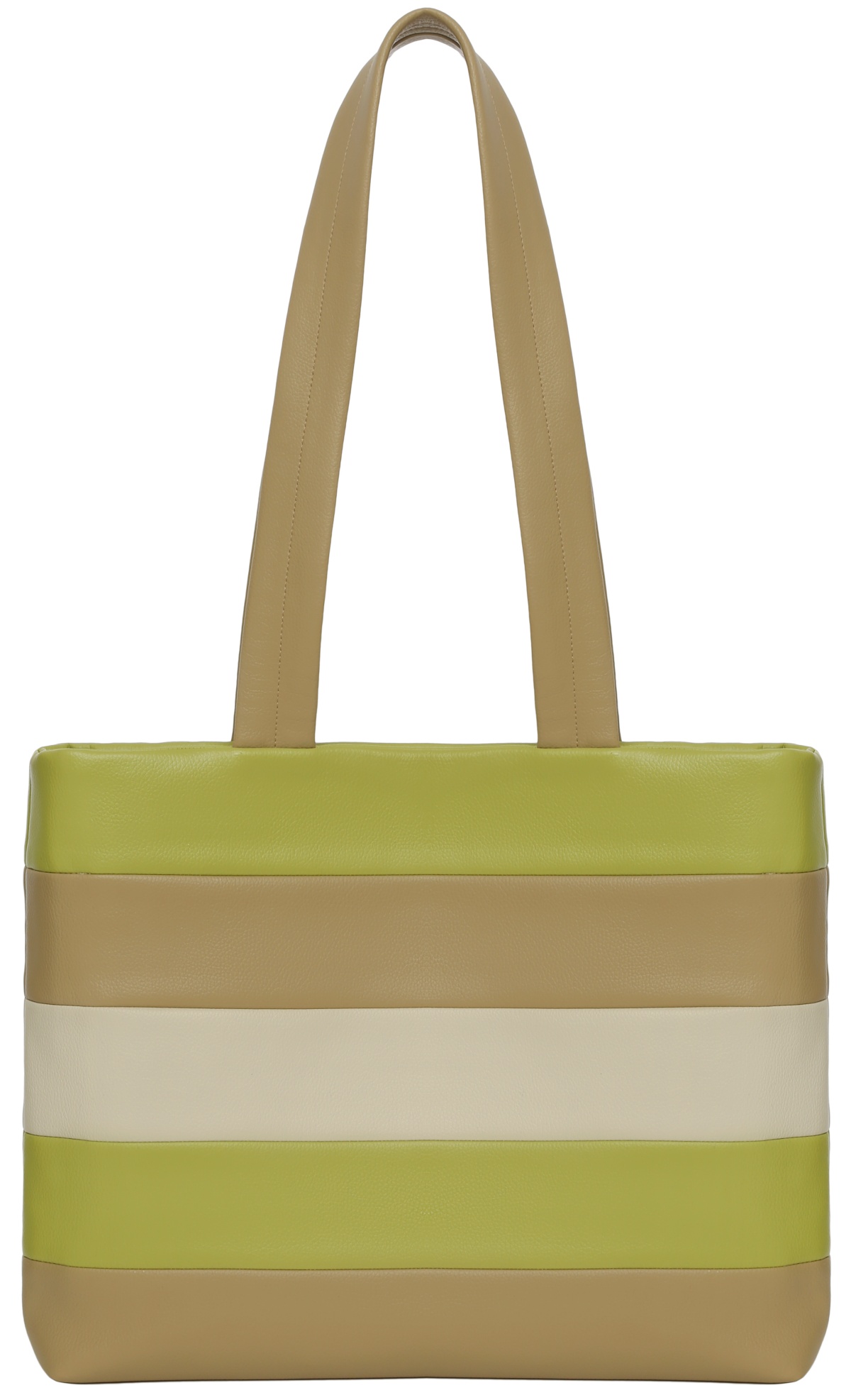 As a representation of the label’s penchant for craftsmanship, Harper shopper tote is executed with patchwork technique. Built with individual grained vegan leather panels, the bag features fully lined interior along with two