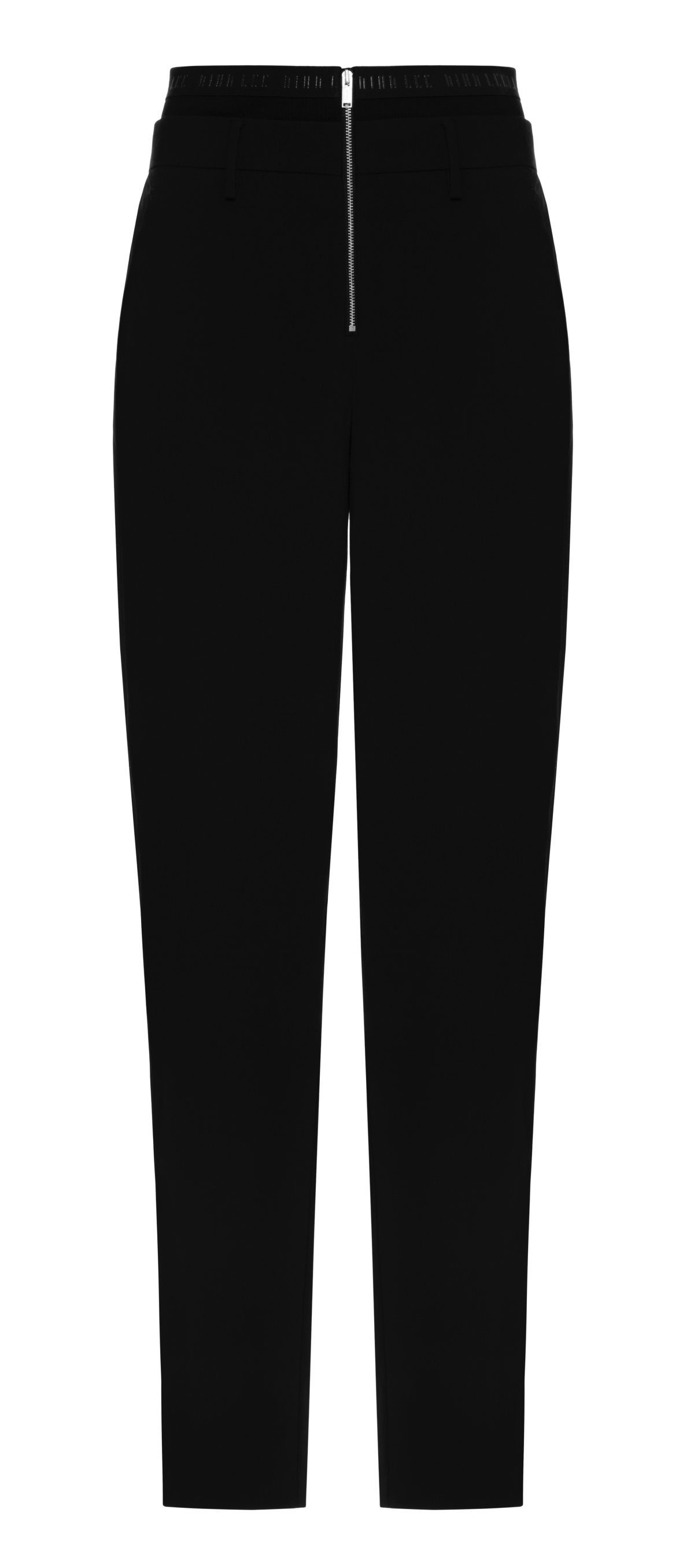 It is never a dull moment when it comes to Dion Lee and Black Suspend Trousers prove that. A classic tailored profile is reinvented with a slightly provocative detail, a logo-detailed waistband, to reflect the peeking underwear trend. The piece is cut from the lightweight suiting trend into a bit slouchy fit. It features side entry pockets along with exposed metal zip closure for enhanced edginess.