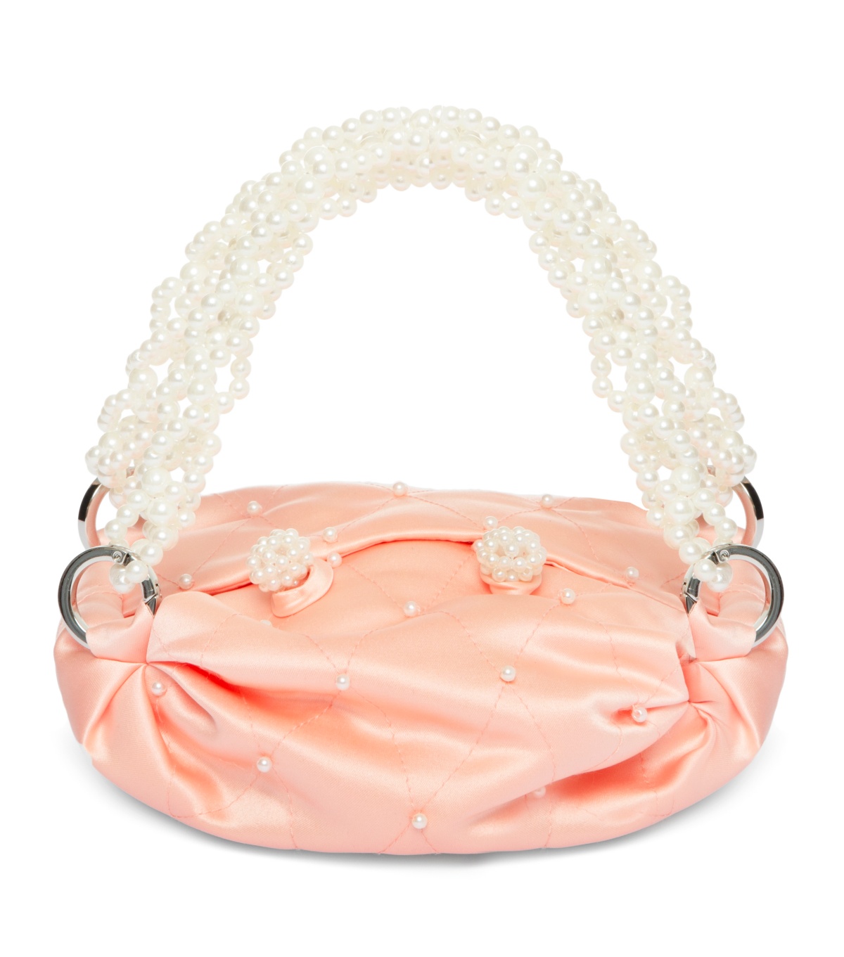 In order to showcase various levels of craftsmanship, the given version of tiny Nino continues to embrace quilting technique. Cut from luminous satin, the bag’s dainty folded silhouette is adorned with pearl embellishments while the handmade motifs (buttons and handles) enrich the sartorial excellence of it.