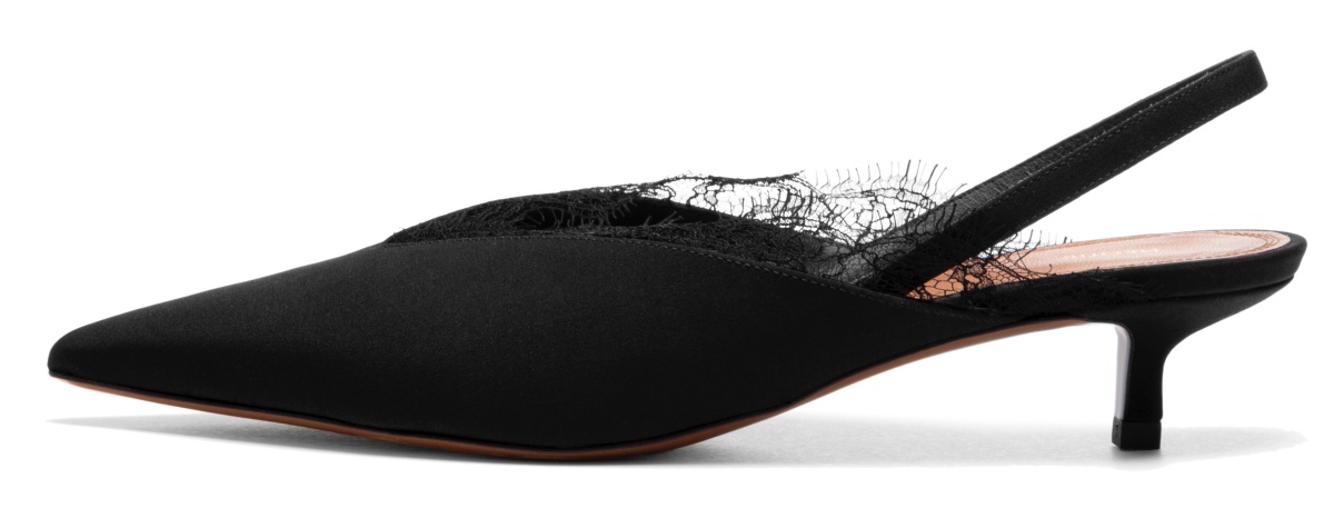 Despite being modern, Neous's Black Irena Slingback stays utterly feminine thanks to the delicate lace-trimmed vamp. Made in Italy from leather backed crepe de chine into a timeless pointed silhouette, the pair is defined with an angular kitten heel and features cushioned insole to guarantee a comfortable wearing experience.