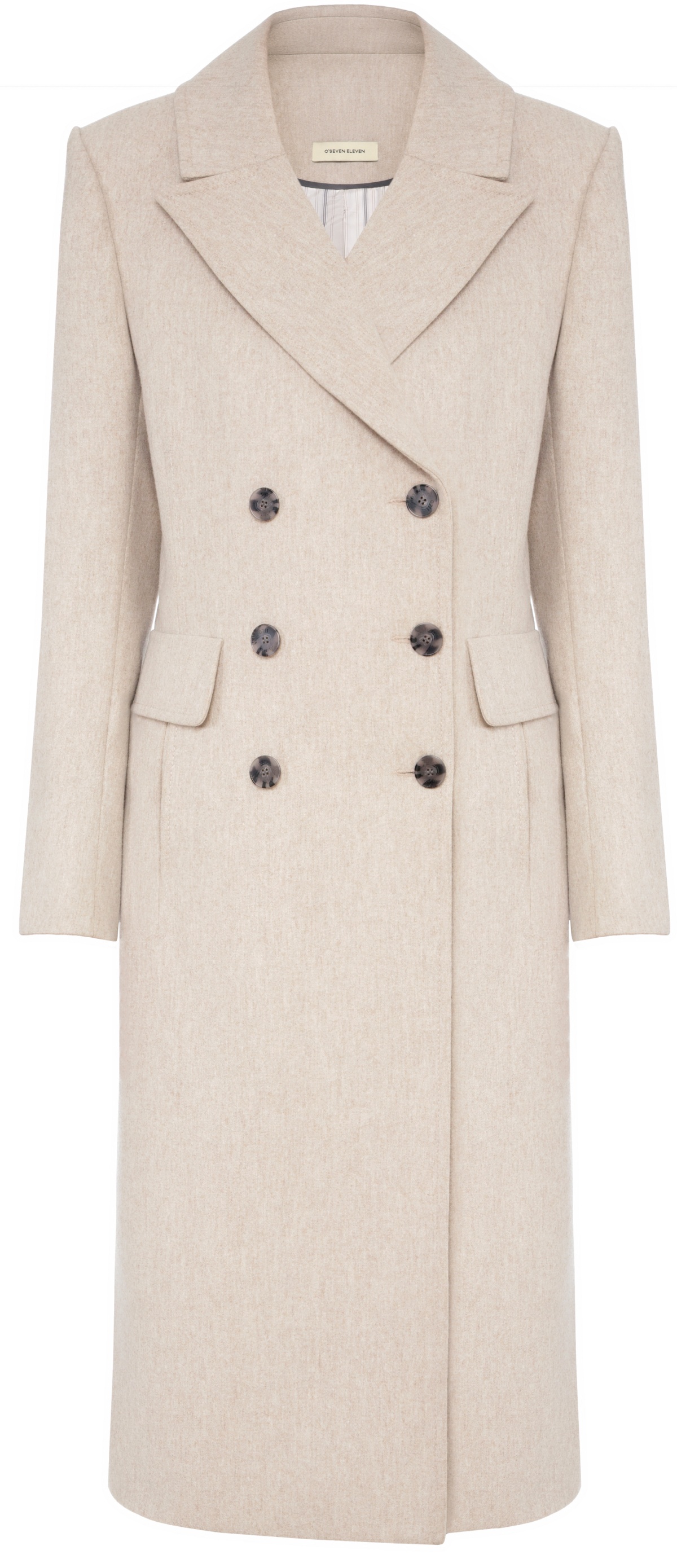 Oatmeal double-breasted coat epitomizes pared-back sophistication - one of the pivotal principle of ready-to-wear collection. Made from cashmere blended virgin wool, the piece is cut to have a slim fit and features a structured profile along with peak lapels, slit pockets and button fastening which opens into a fully lined interior.