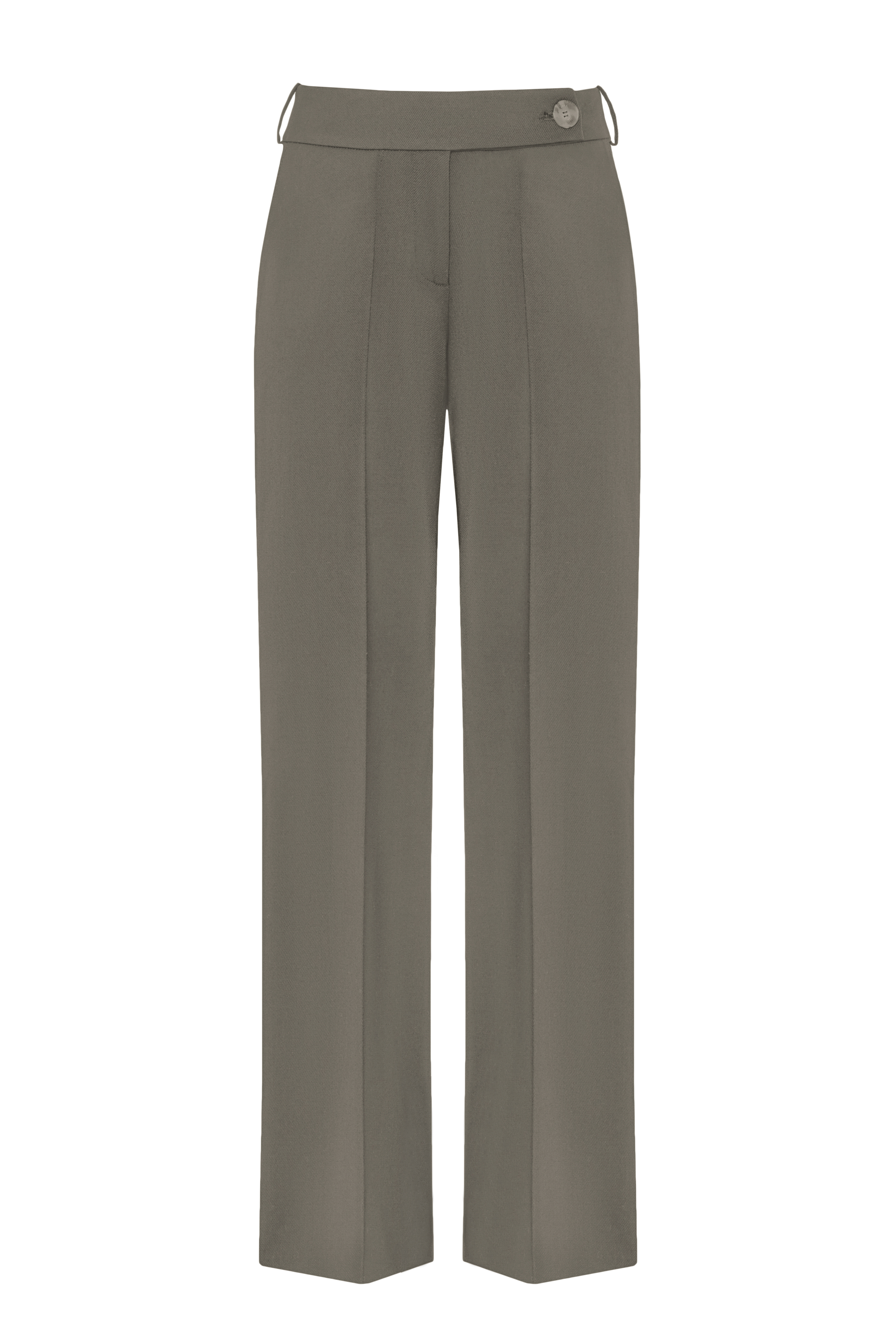 Evoking the infamous 2000's trend, army green trousers are defined with a low-slung waist to undermine a tailoring-based, masculine silhouette with a sensual spin. Cut to have pleat-accentuated fluid legs for extra comfort, the piece is minimally decorated to put forward versatility and features zipper fastening along with the belt loops and side slit pockets.