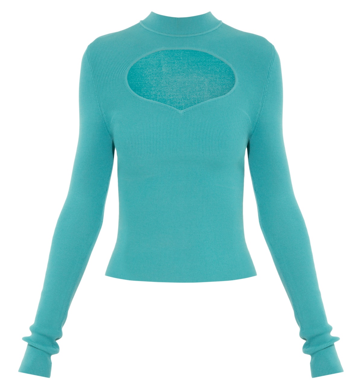 Blue Clara Top encapsulates the summer mood. Defined with a cheerful colorway that possesses the ability to instantly uplift any outfit, the piece is tight-knit and features long sleeve silhouette alongside mock neck and center keyhole detailing.