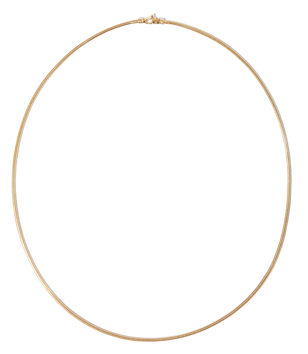 As demonstrated by Snake Necklace, Tom Wood’s design philosophy is centered around streamlined silhouettes. The piece is crafted from gold-plated sterling silver to a sinuous chain with logo-engraved box clasp closure.