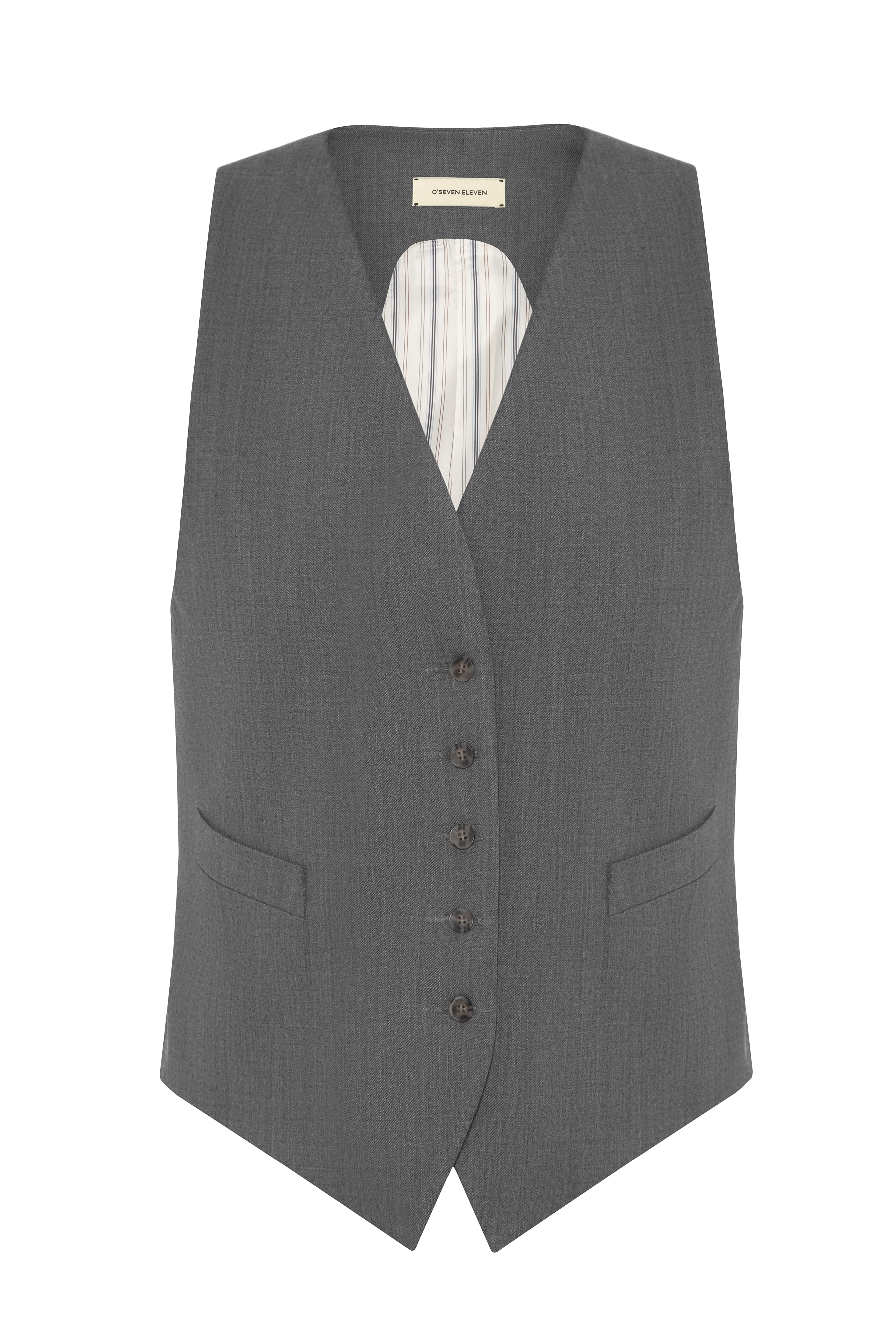 O'SEVEN ELEVEN's interpretation of the wardrobe classic, Grey Waistcoat is a perfect option to master off-duty tailoring during the balmy summer months. Crafted from Italian melange wool, the piece sticks to the traditional formula with a single-breasted full vertical opening, welt pockets and a back strap.