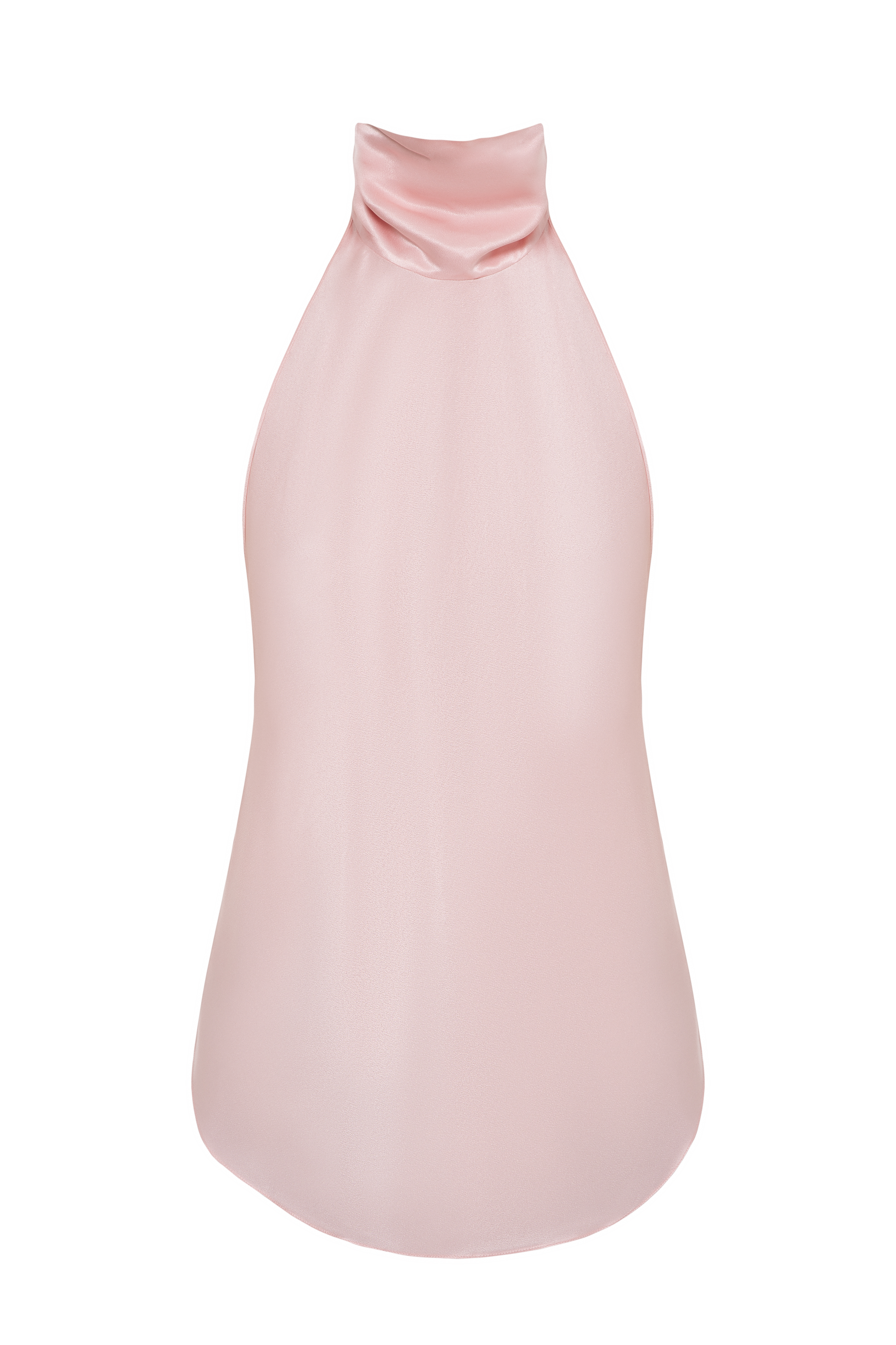 Materiel's aesthetic is mainly centered on structural elements and sharply tailored separates, which come offset by fluid feminine profiles in a lineup of environmentally conscious sensual pieces. Above mentioned is perfectly highlighted by Pink Blouse. Crafted from lustrous satin into a slimline profile, the piece fastens with buttons while it's unfussy design is elevated with a high neckline and tie-detailed backless silhouette.