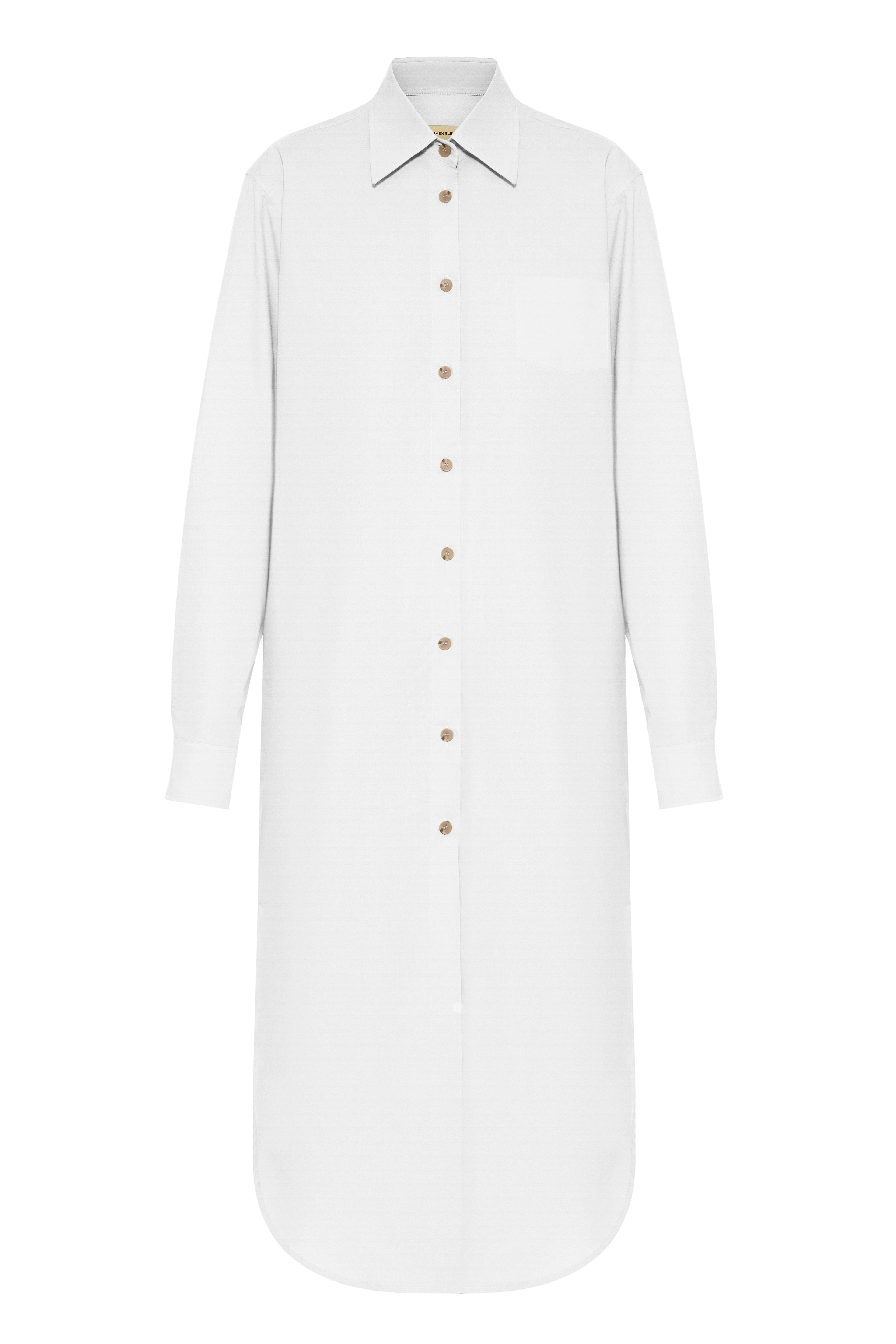 Whether looking for a chic swimsuit coverup or want to make a summer outfits a bit more dressier, White Longline Shirtdress from O'SEVEN ELEVEN has got you covered. Characterized by classic details such as a neat point collar and front button placket, the piece is as simplistic as it gets to utilize the idea of the button-down's universality.