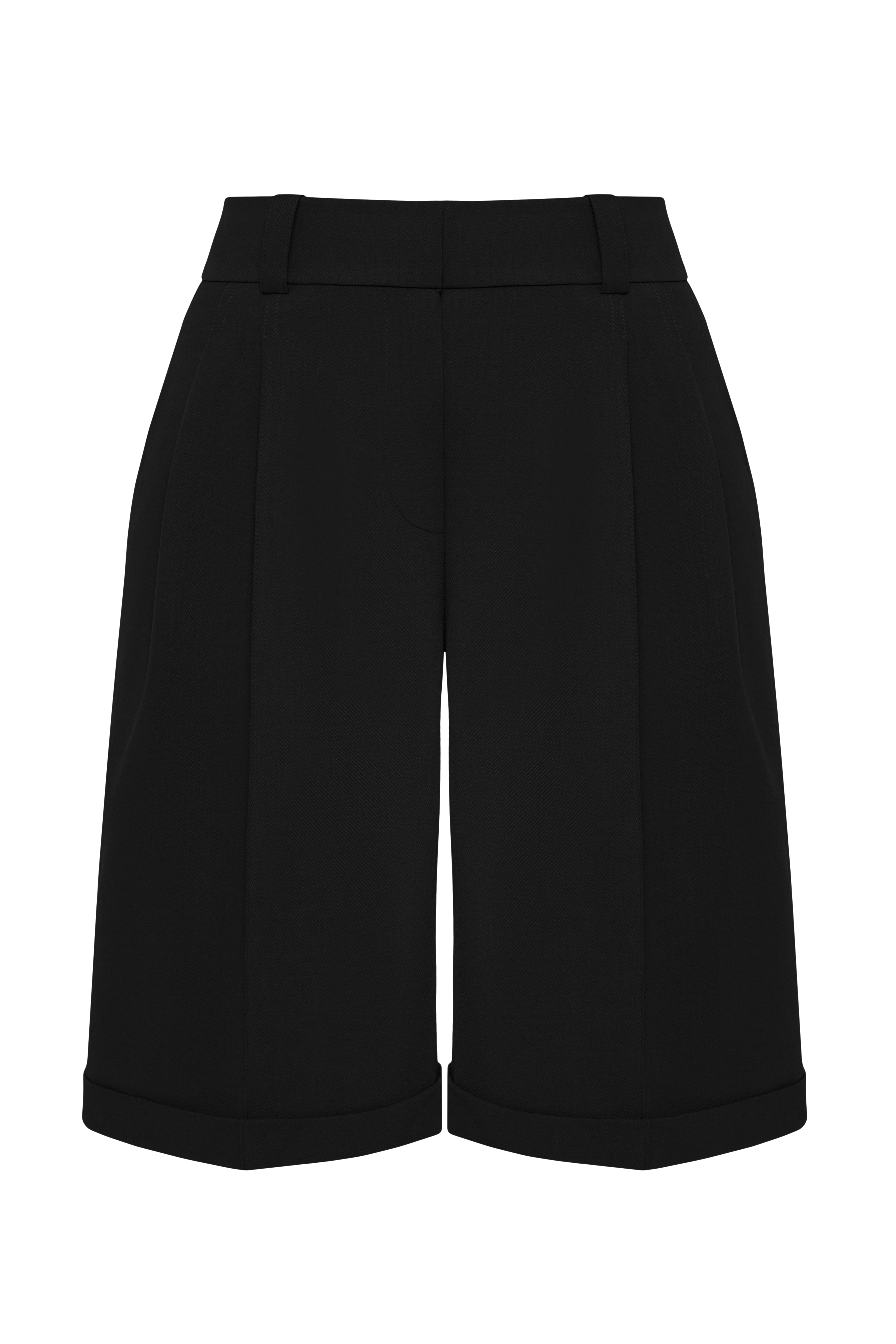 Black Pleated Shorts stay elegant with the help of sharp tailoring, while Bermuda length breathes the air of casualness into them. With a perfect balance between formal and everyday wear elements, a piece is a trusty option whether running errands or working 9 to 5 and features a slightly roomy fit along with belt loops, slant pockets and zip closure.