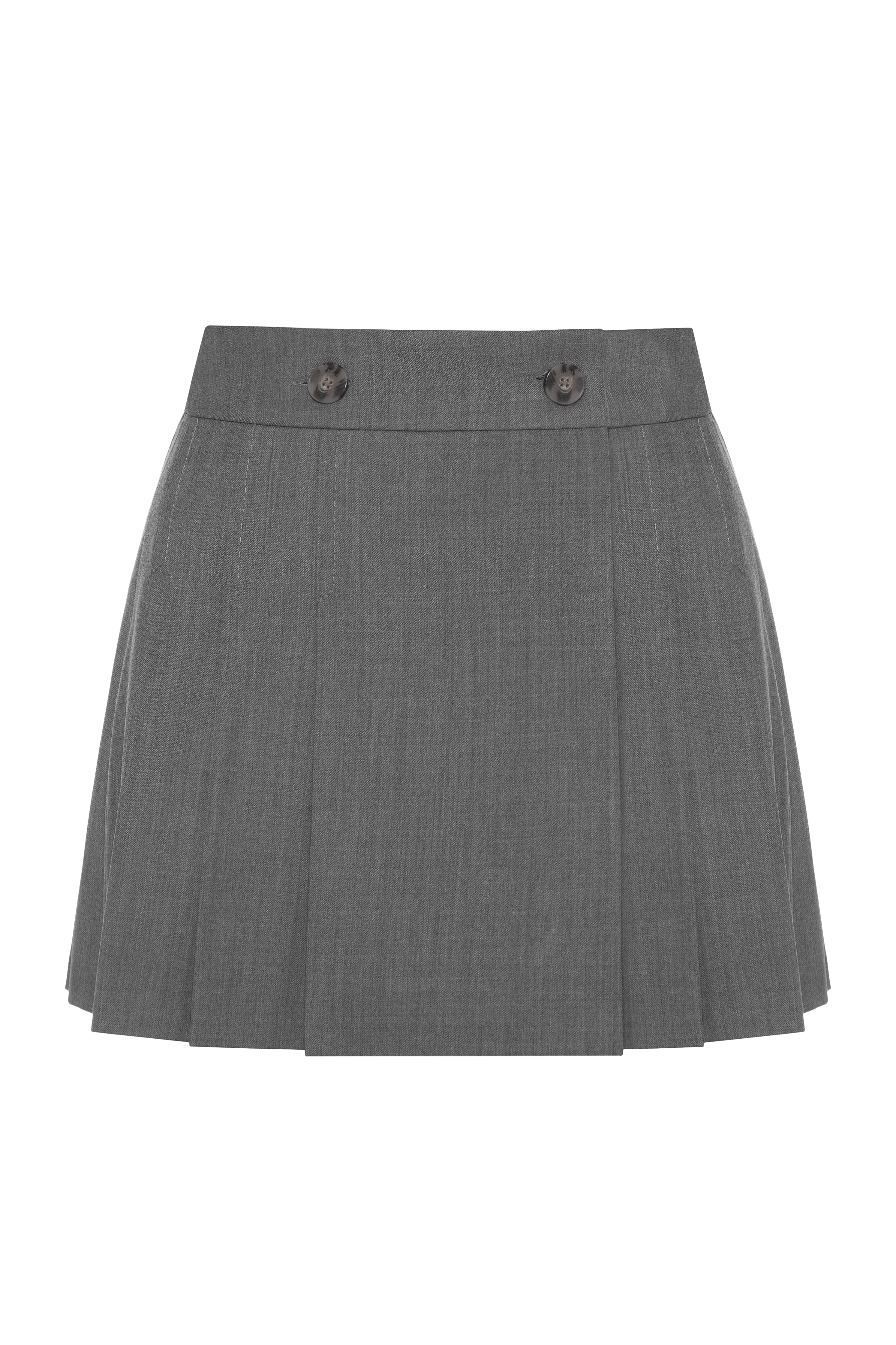Grey Pleated Mini Skirt from O'SEVEN ELEVEN stands out with uncomplicated elegance furtherly updated with a subtle playful touch. Reminiscent of a tennis skirt silhouette with a wrap-around construction, the piece fastens with a couple of buttons and is rendered from Italian wool-blend fabric to elevate sporty essence with a luxe spin.