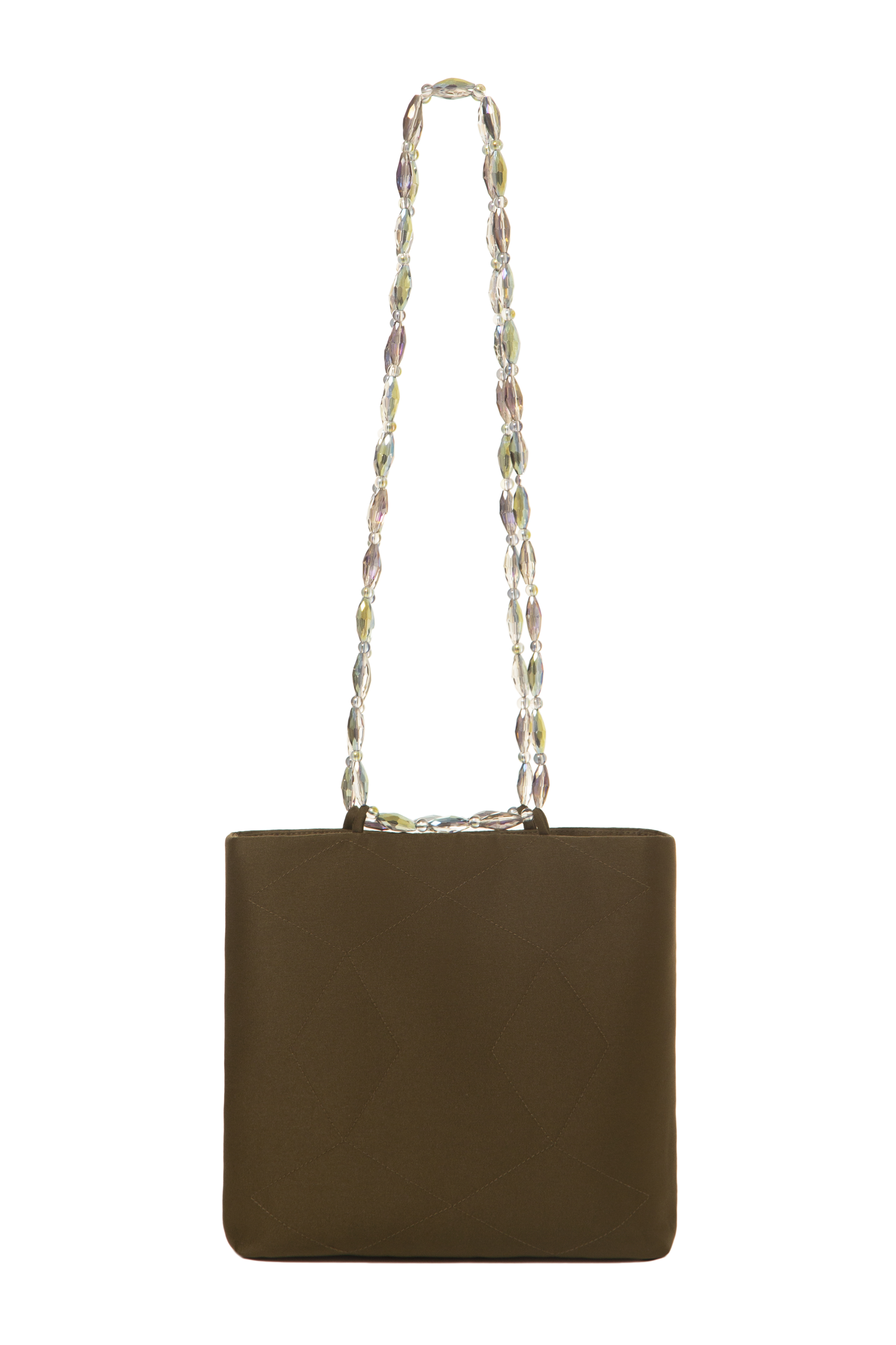 Khaki Natia Shoulder Bag imbues 0711 Tbilisi's dazzling aesthetic with hints of pared-back sophistication. The piece boasts a minimalistic square profile that is quilted for a dose of texture. It fastens with a magnet and features a glass bead-ornamented handle to highlight the label's penchant for craftsmanship and eye-catching details.