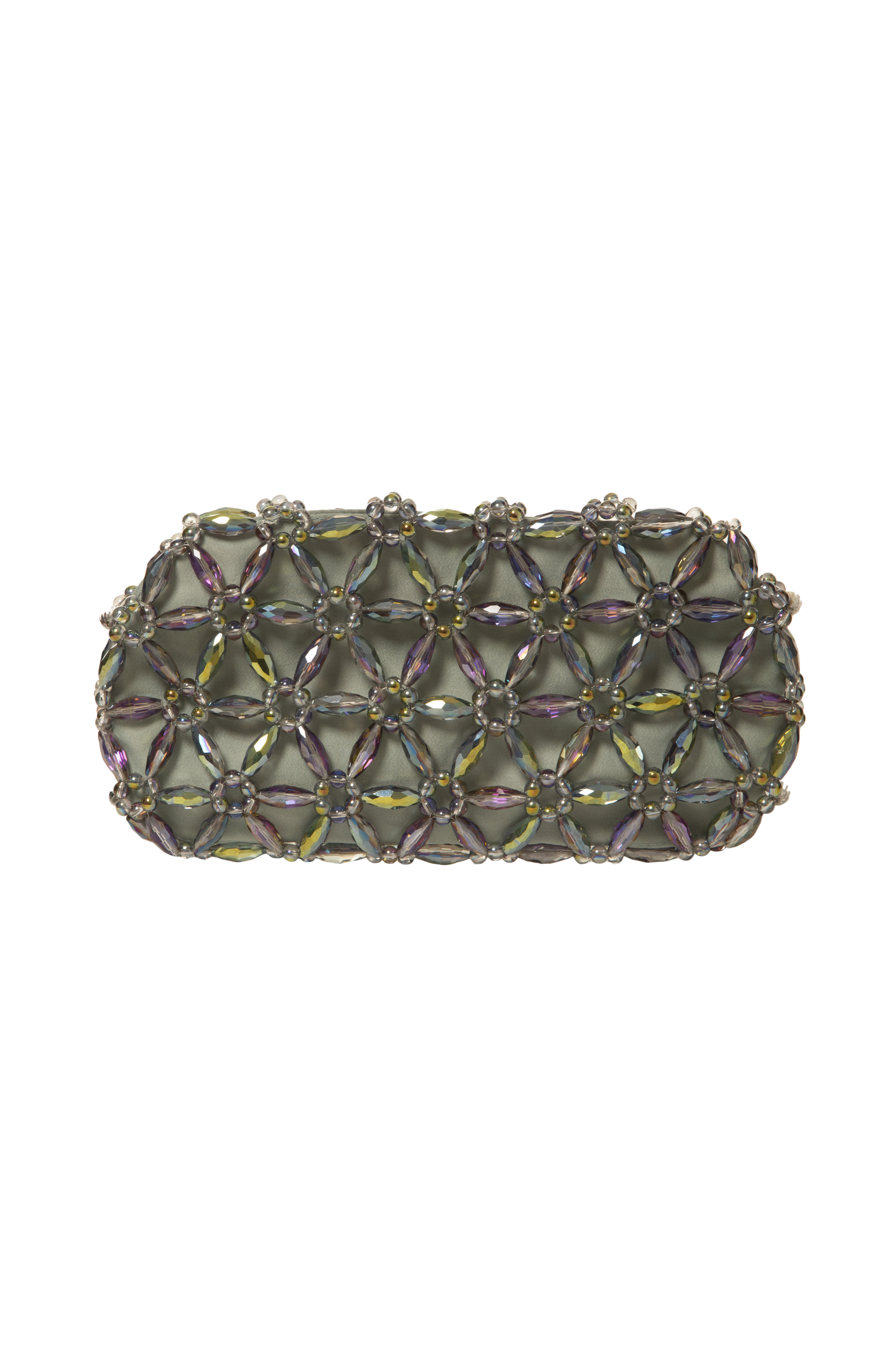 With a daisy-like weaving technique, 0711 Tbilisi's Petrol Tebea Clutch radiates immense femininity. Hand-assembled with dazzling glass beads into an oval shape, the bag features a magnet-fastened inner satin pouch to keep all the evening essentials secure.