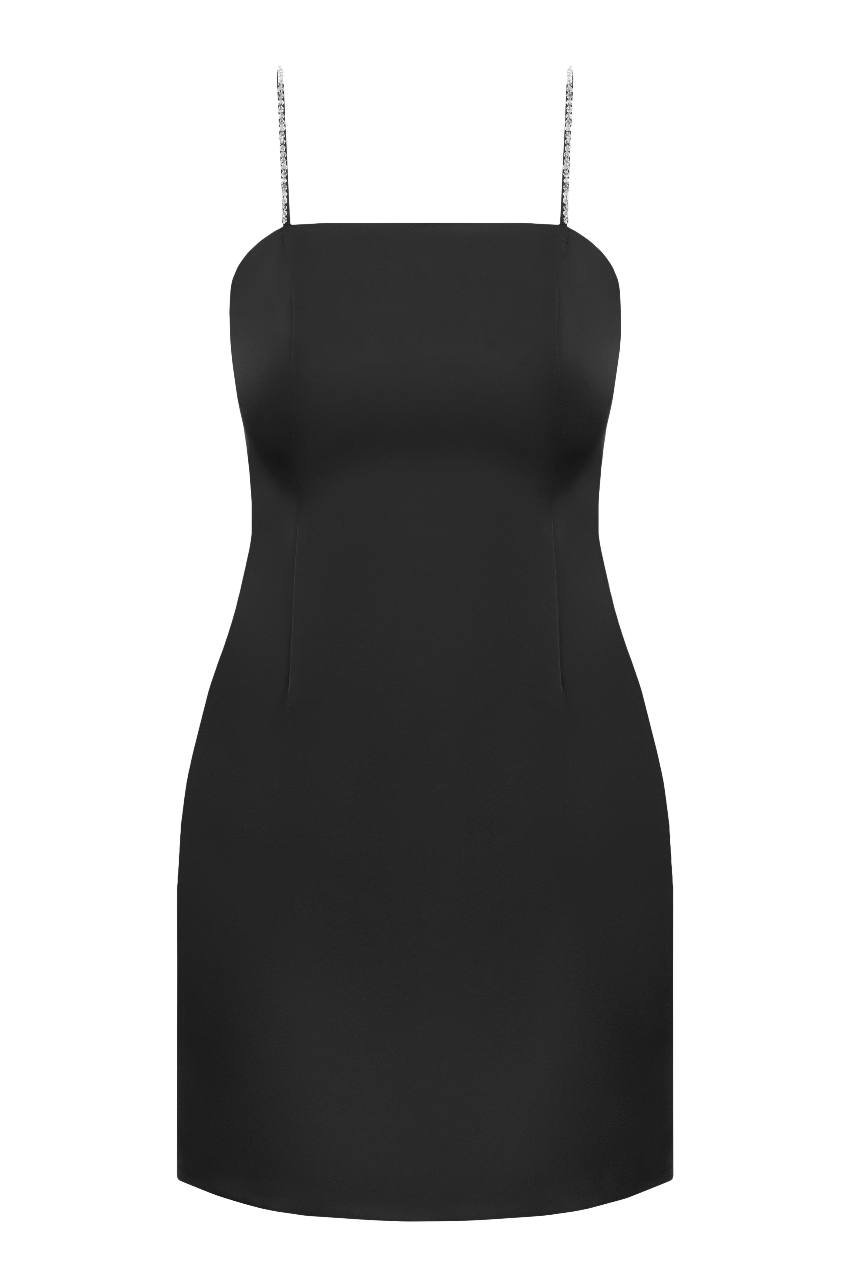 Kris Maran's take on a classic LBD, Black Mini Dress juxtaposes a soft satin construction with a simplistic silhouette to create a minimalist marvel. Featuring a side zip fastening, the piece fits slim and is defined by a straight neckline that is punctuated by crystal-embellished slinky straps for a decorative context.