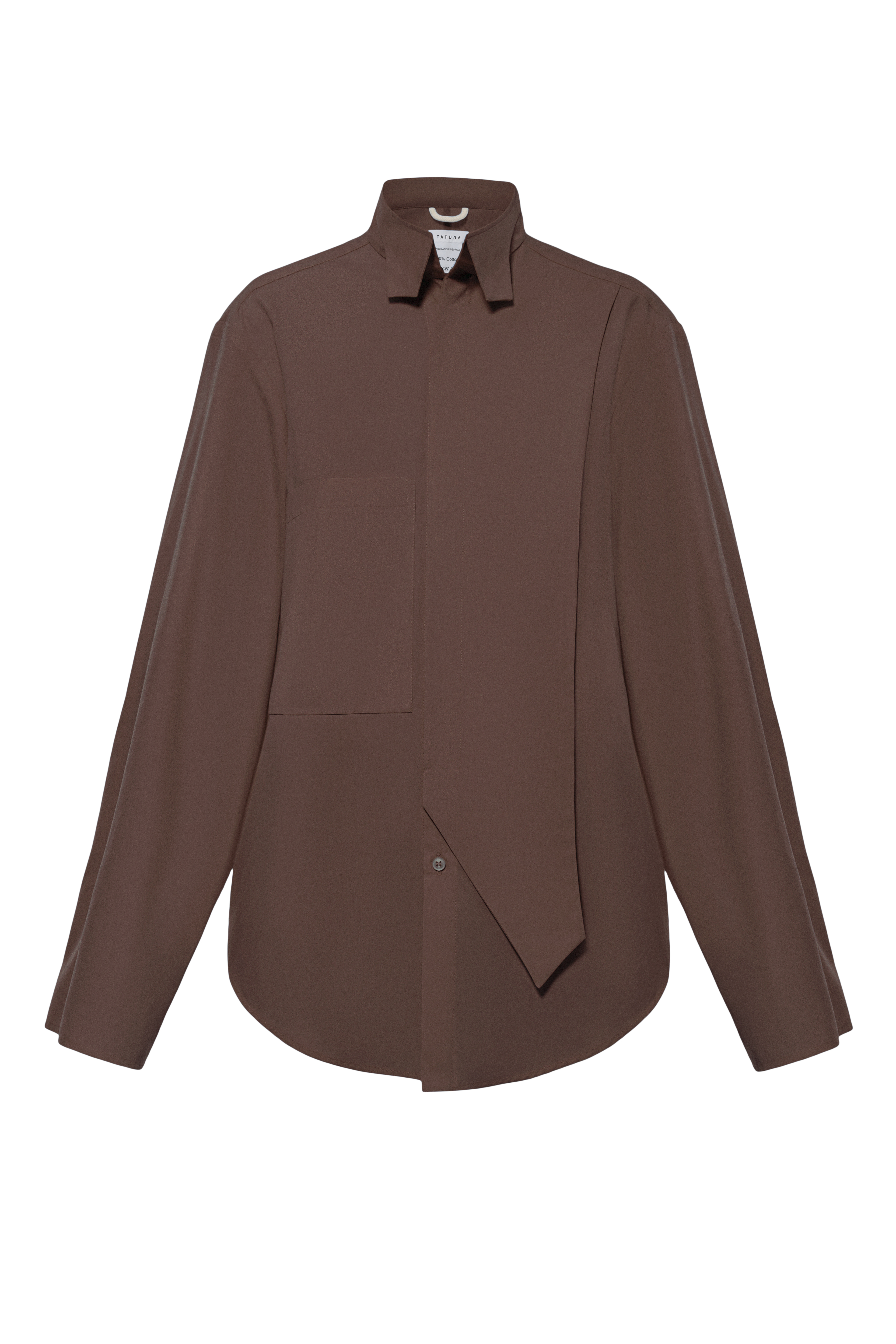 Brown Shirt highlights Tatuna's ethos which is to create wardrobe essentials that nod to classic tailoring codes while staying directional at the same time. The piece is crafted from organic cotton and features a reimagined point collar along with a button fastening, singular front pocket, and a voluminous silhouette which ensures a relaxing fit.