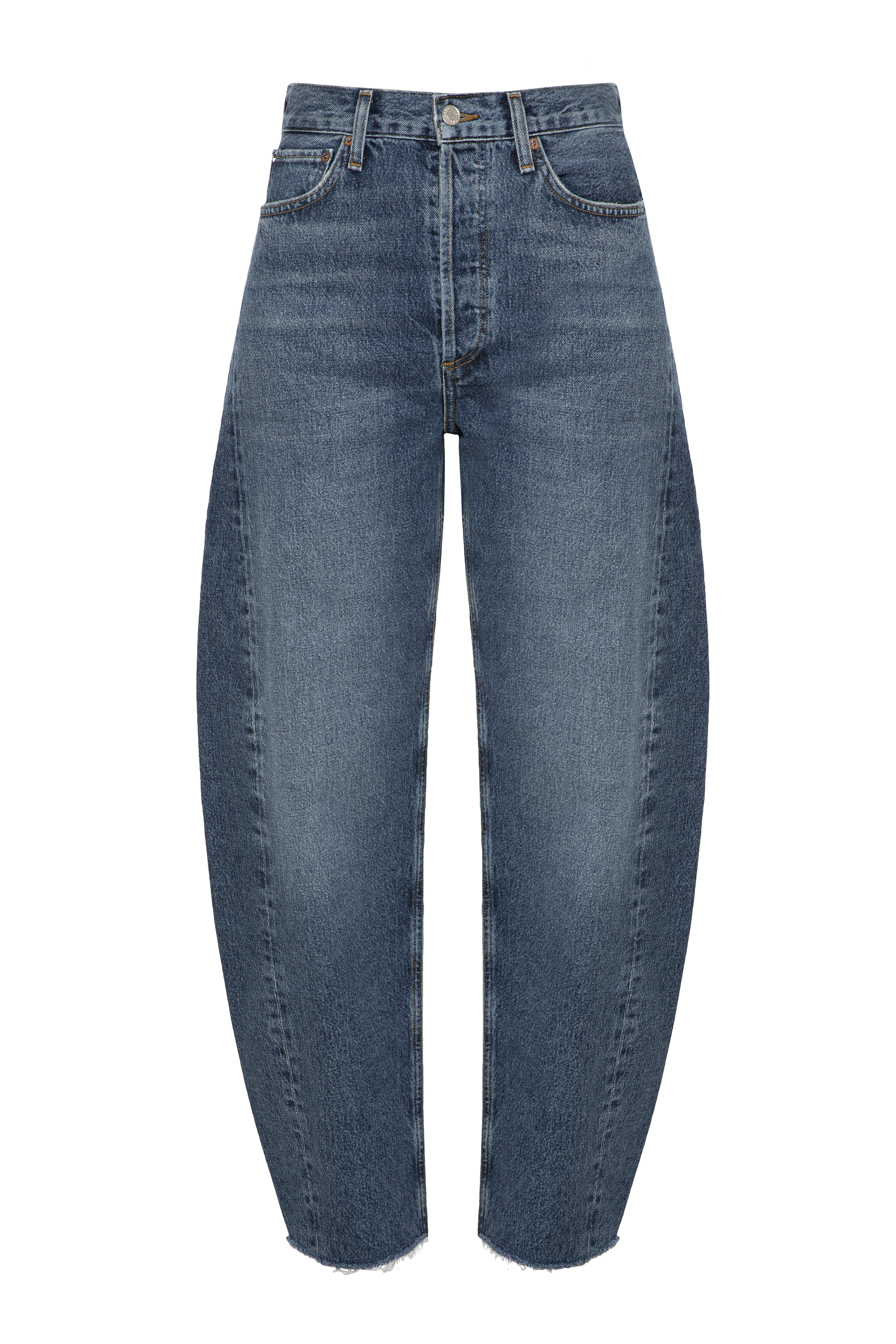 Taking the oversized trend of the 80s and implementing it in contemporary wardrobes, Navy Blue Luna Jeans from Agolde offer unparalleled comfort. Crafted from sustainably sourced denim, the statement-making pair is completed with a flattering high waistline while featuring a five-pocket design, curved outseam, and bowed legs.
