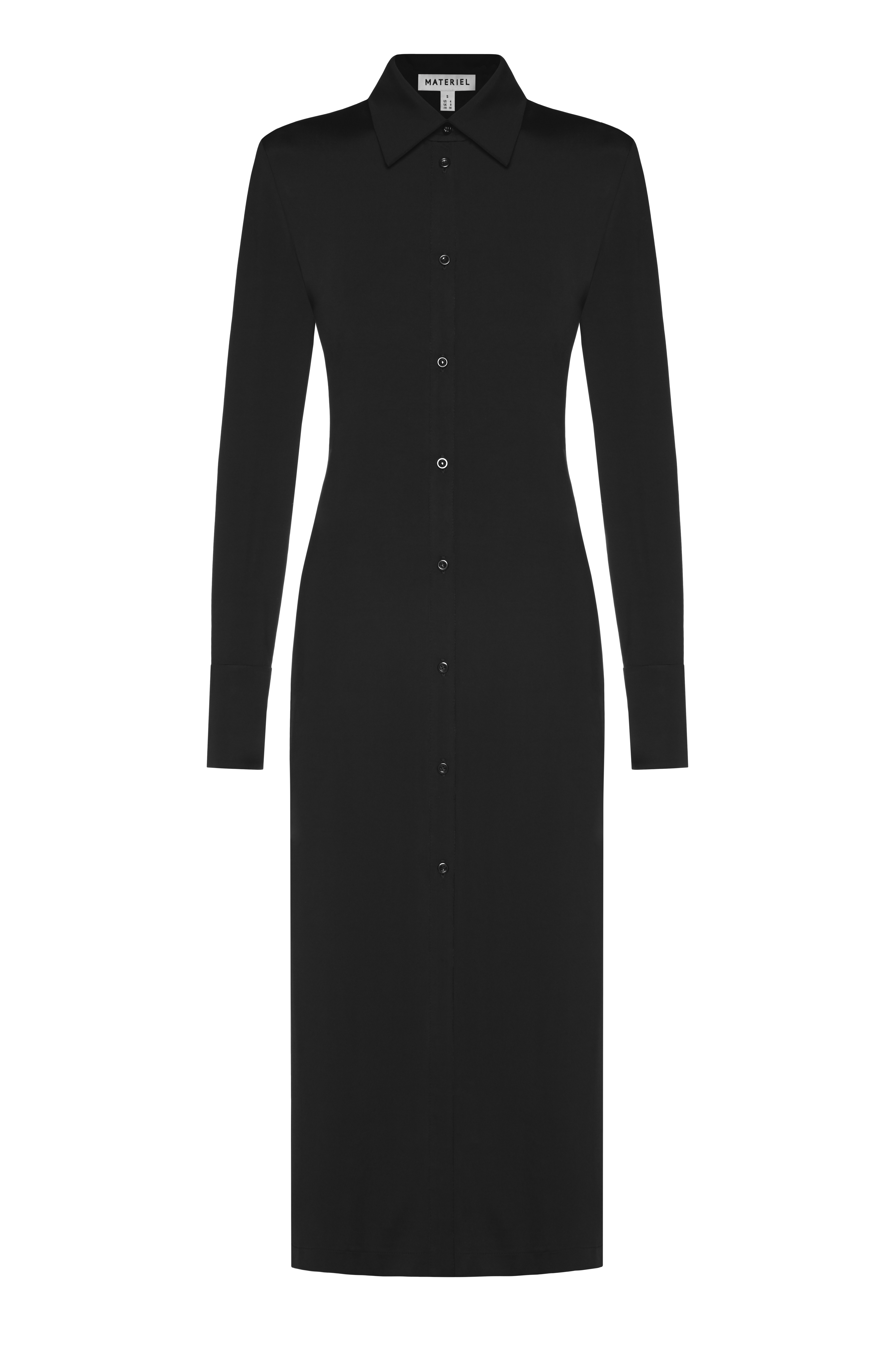 A streamlined design with a seductive touch, Materiel's Open-Back Buttoned Dress is designed with versatility in mind. Starting from a neutral hue and finishing with a minimalistic profile, the piece promises to seamlessly transit any outfit from day to night. It features a skin-tight fit along with a high neckline and a backless silhouette for a sensual spin.