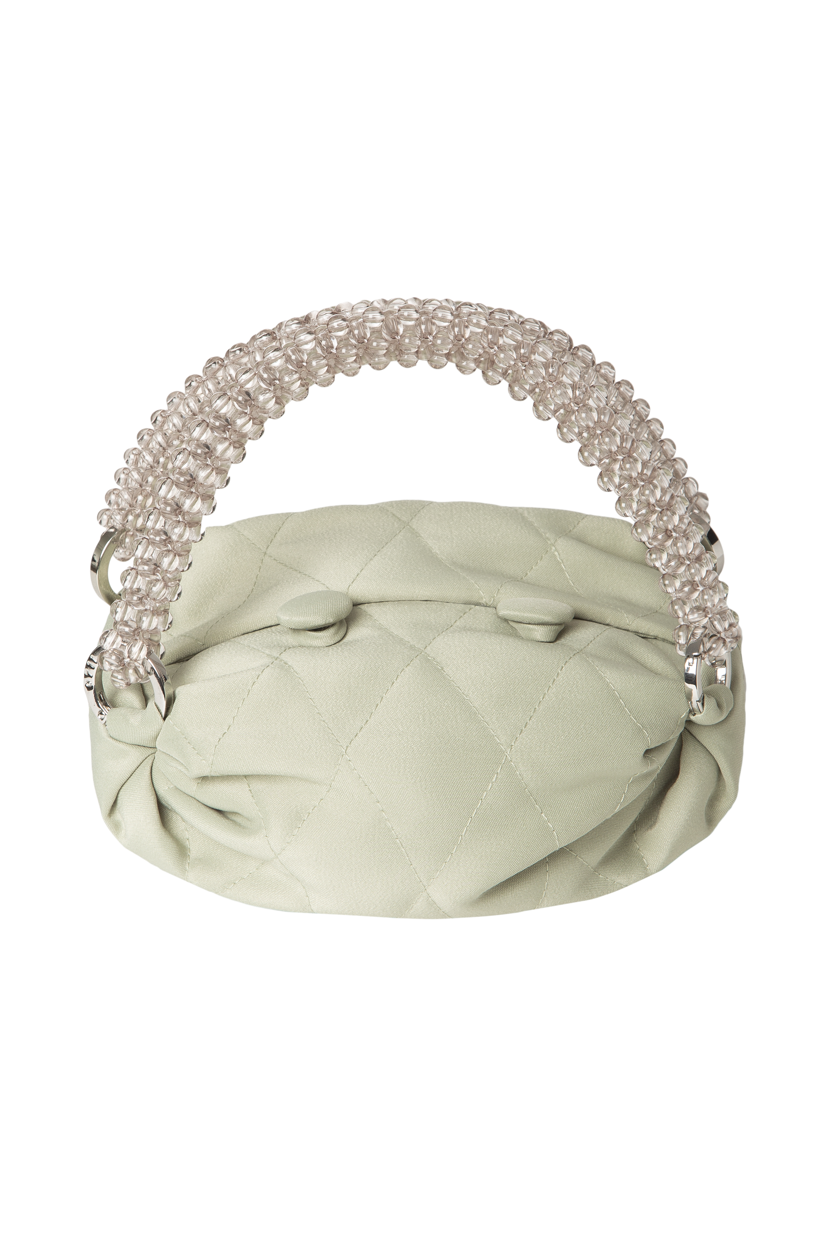 Signature of 0711 Tbilisi, Tiny Nino is a unique offering that puts a fresh twist on occasion wear accessories. Crafted from fluid satin into an artfully folded silhouette, the piece is elevated with beaded top handles and features button closure along with the fully lined interior.