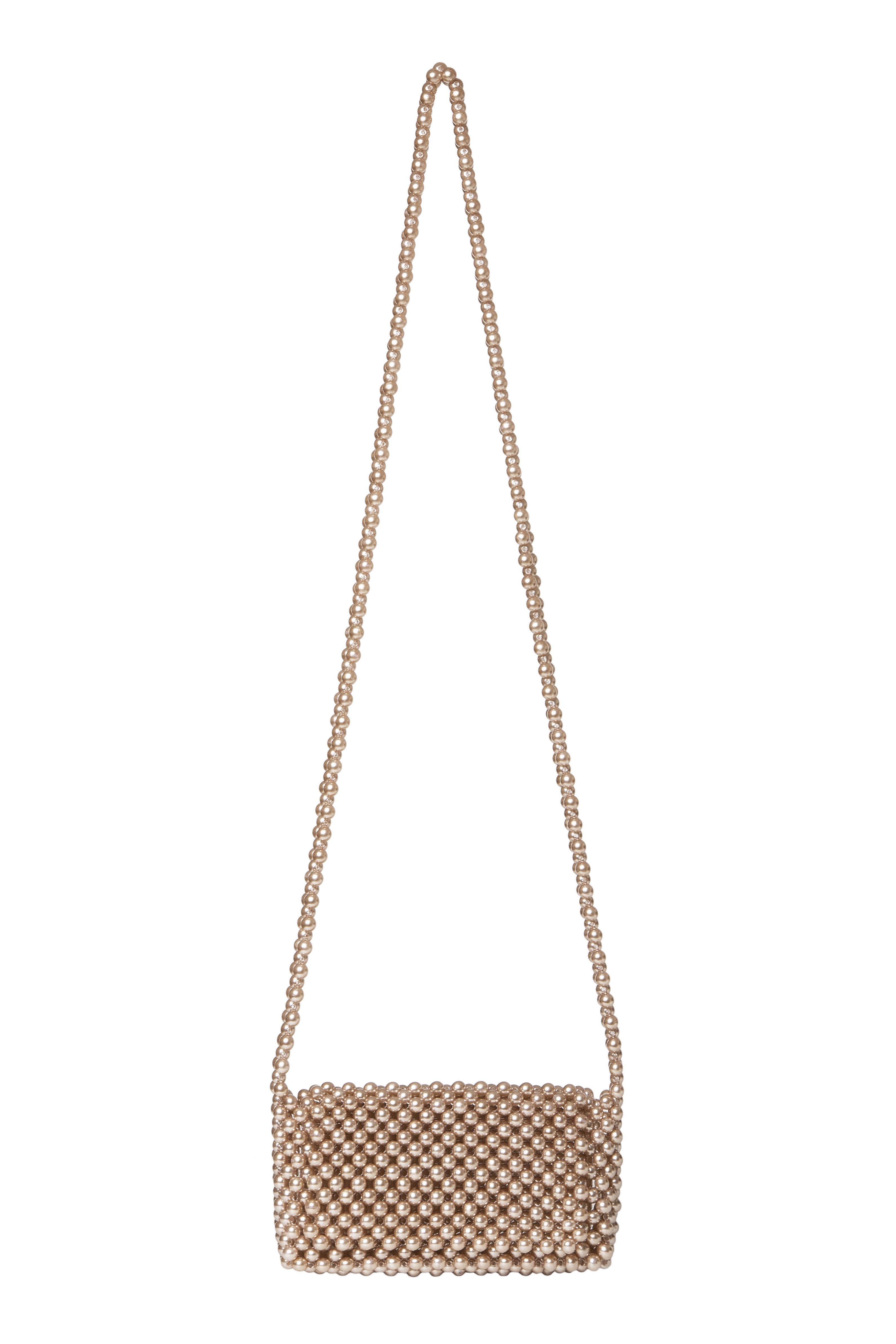 0711 Tbilisi's iteration of wallet on chain, Rose Mini Carla Bag follows the label's design philosophy and is meticulously crafted into a tight-knit beaded silhouette. The bag is defined with a long crossbody strap and features a flap closure which provides access to the interior enough for a phone and all the daily essentials.