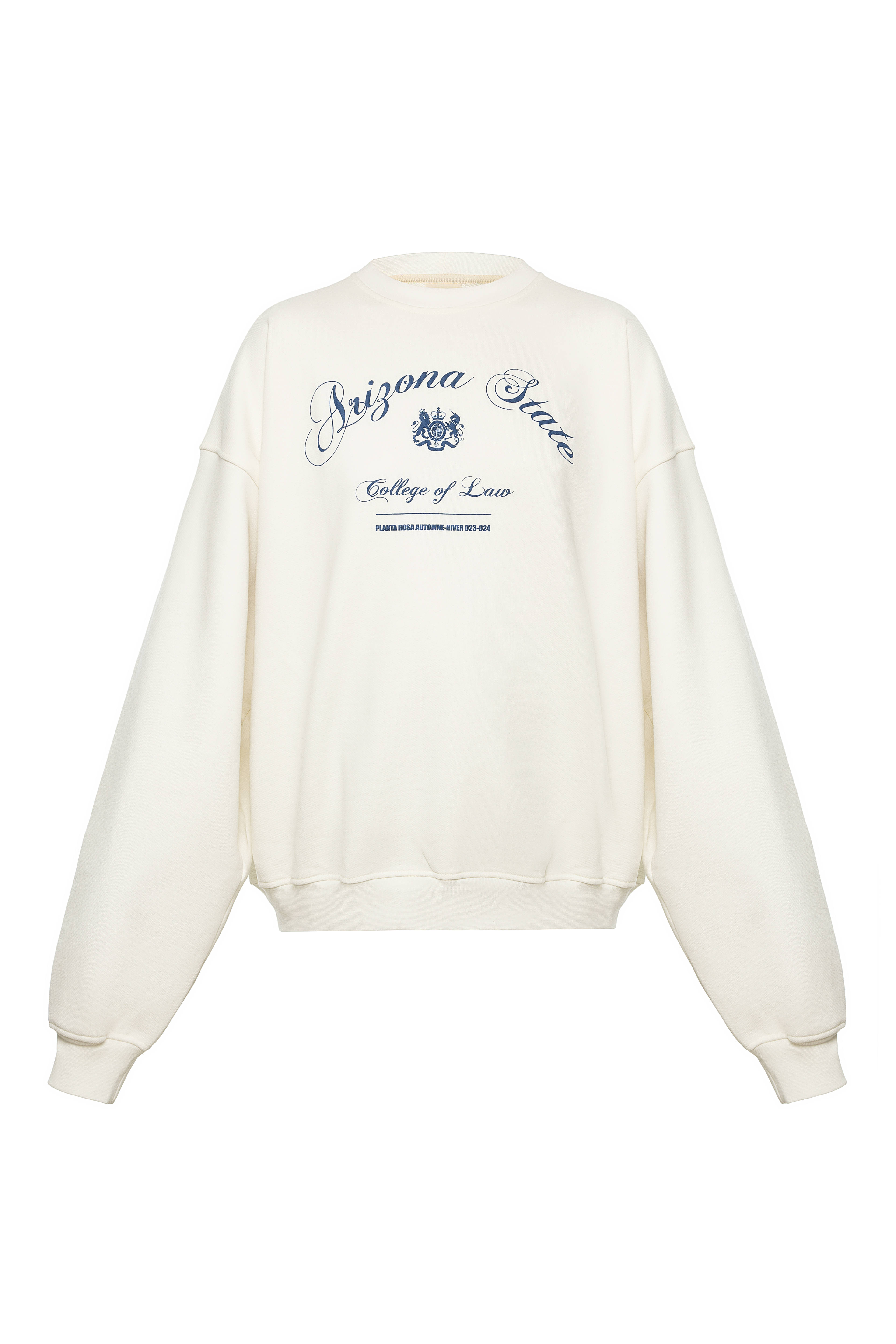 Established with an ethos to resurrect beloved vintage silhouettes, Planta Rosa offers a considered selection of retro profiles with a contemporary spin. A part of the above-mentioned selection, Arizona Sweatshirt is inspired by American collegiate apparel while featuring a classic crew neck and dropped shoulders. Cut for an oversized fit, the piece is elevated with a weightly yet soft cotton fabrication intended to provide a comforting feel.