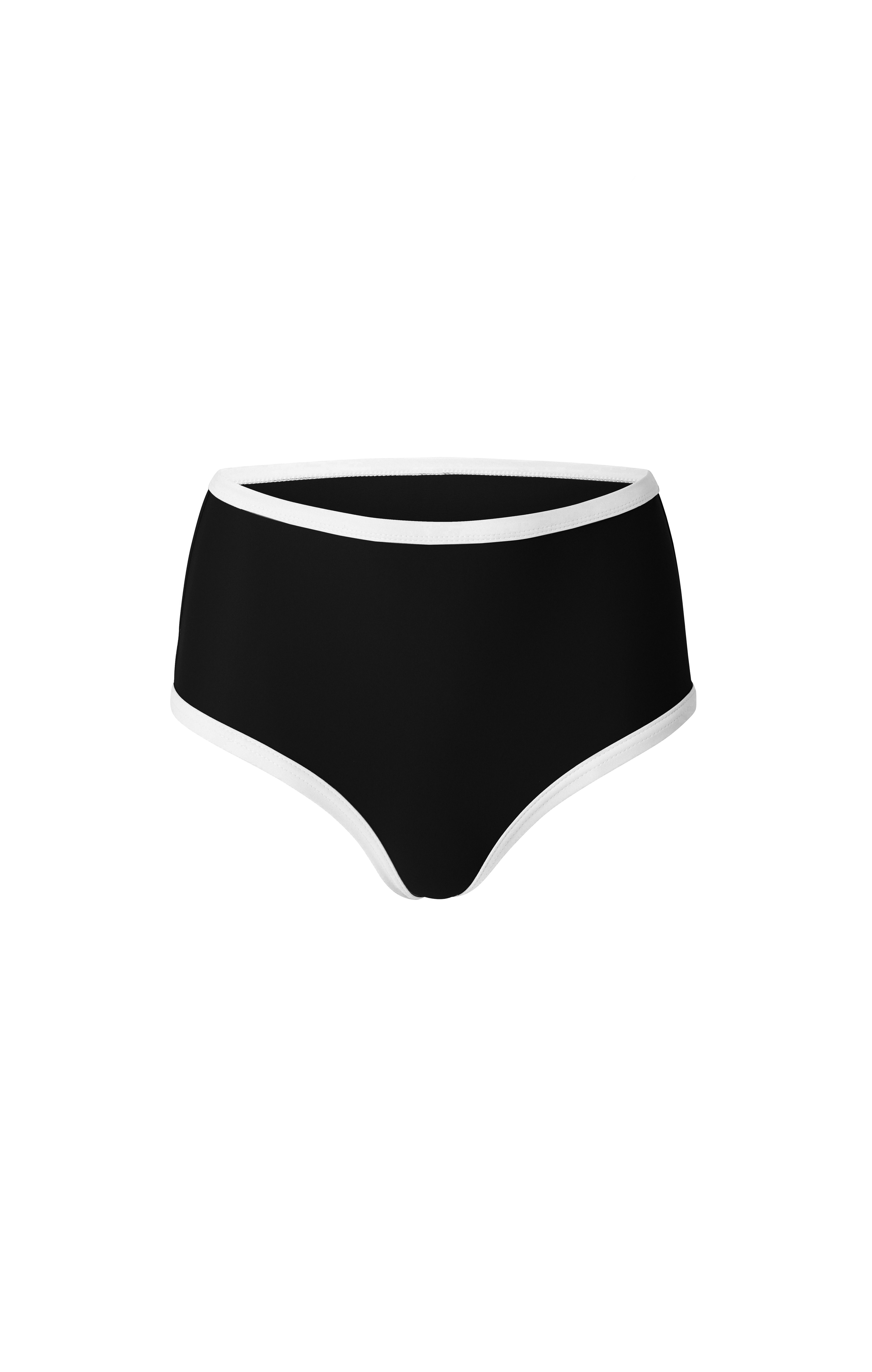 With regenerated fabrics and tight-knit production process, Pilzer aims to adopt sustainable practices to imbue their retro-inspired swimwear with a dash of modernity. The above-mentioned is brought to life by Black & Cream Bare Bikini Bottom that boasts vintage high-rise profile. Featuring double lining for comfort, the piece is crafted from soft-to-touch stretchy nylon to ensure to flatter different body types.