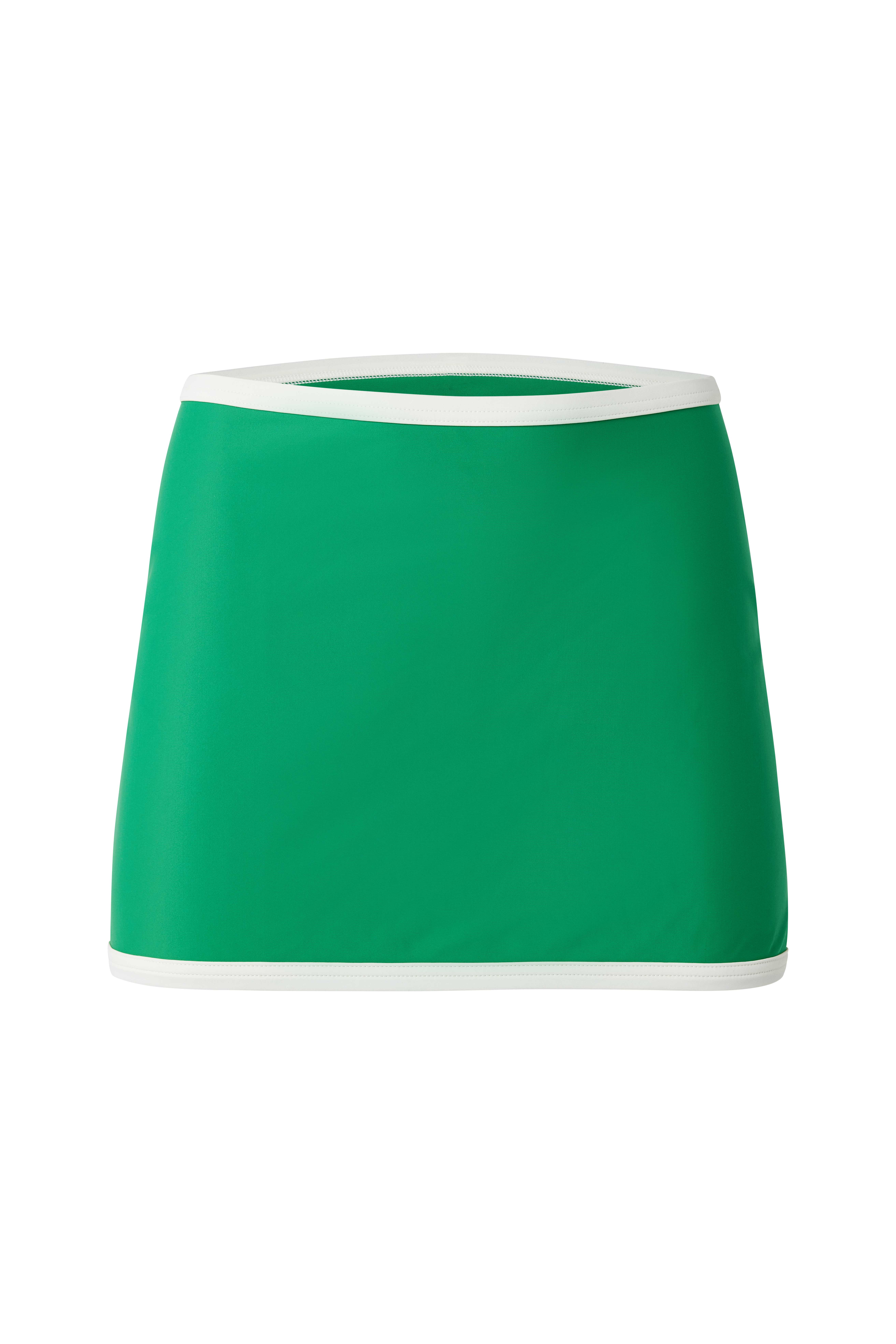 With regenerated fabrics and tight-knit production process, Pilzer aims to adopt sustainable practices to imbue their retro-inspired swimwear with a dash of modernity. The above-mentioned is brought to life by Forest Green Cover-Up Skirt that boasts 50's influenced high-rise profile. Featuring double lining for comfort, the piece is crafted from soft-to-touch stretchy nylon to ensure to flatter different body types.