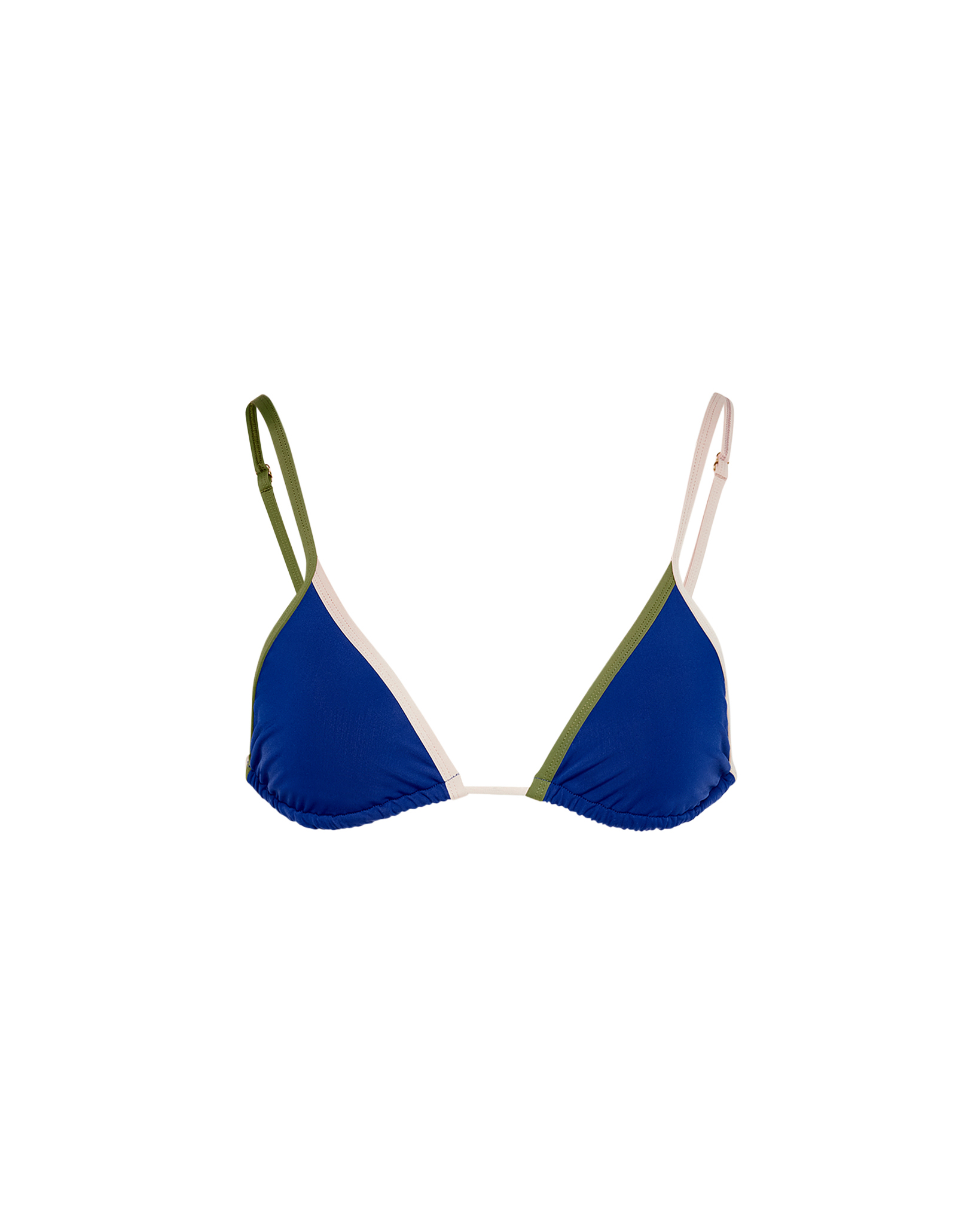Timeless and elegant, this bikini top from Pilzer in Deep Blue combines classic sophistication with slender, adjustable straps for a personalized fit. Drawing inspiration from the vibrant colors of the 1990s summer, it adds a nostalgic yet stylish touch to your wardrobe.