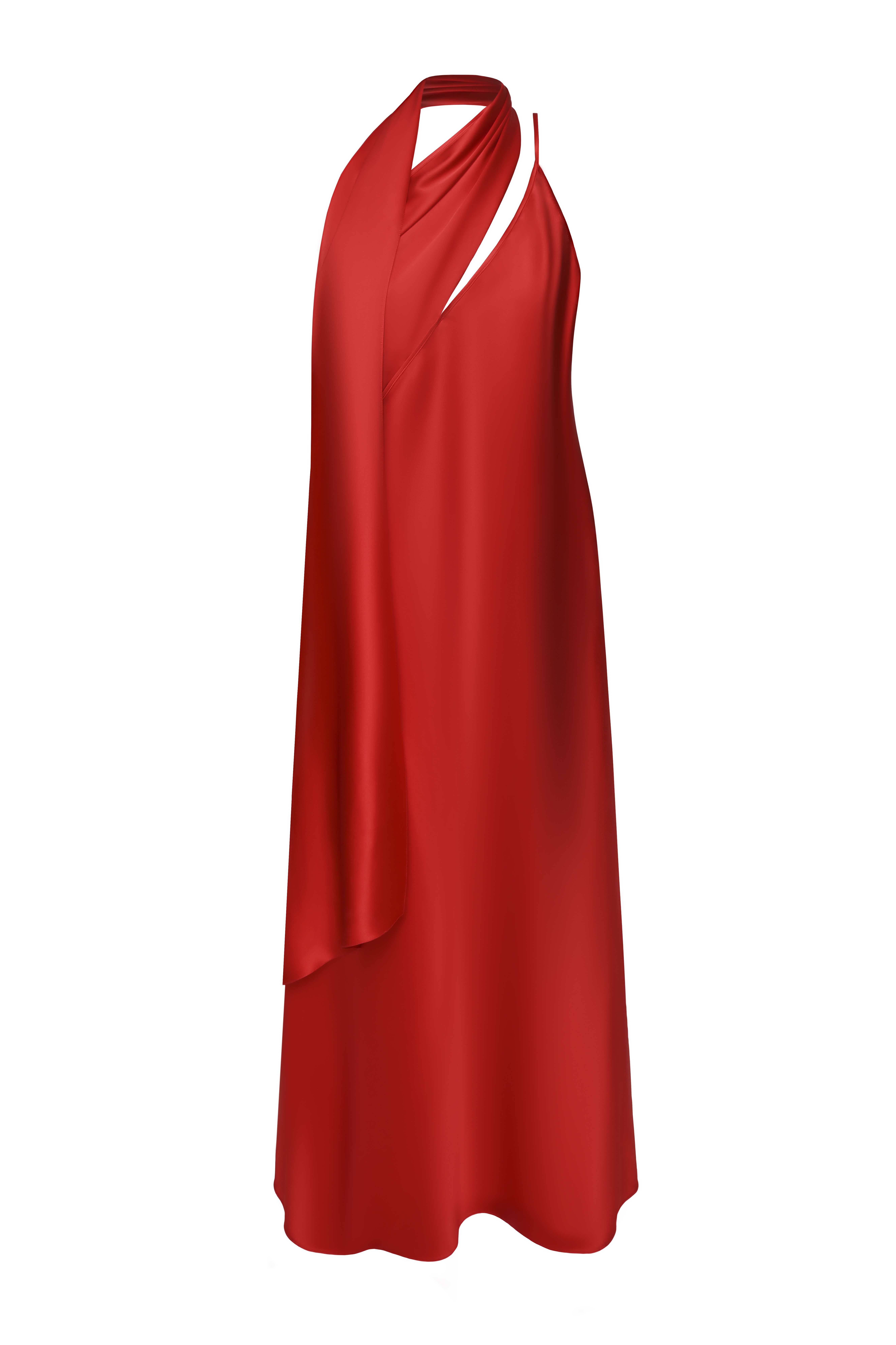 Materiel's aesthetic is mainly centered on structural elements and sharply tailored separates, which come offset by fluid feminine profiles in a lineup of environmentally conscious sensual pieces. Above mentioned is perfectly highlighted by Red Maxi Dress. Crafted from fluid silk into a slimline profile, the piece's unfussy design is elevated with a distinct scarf-detailed neckline.