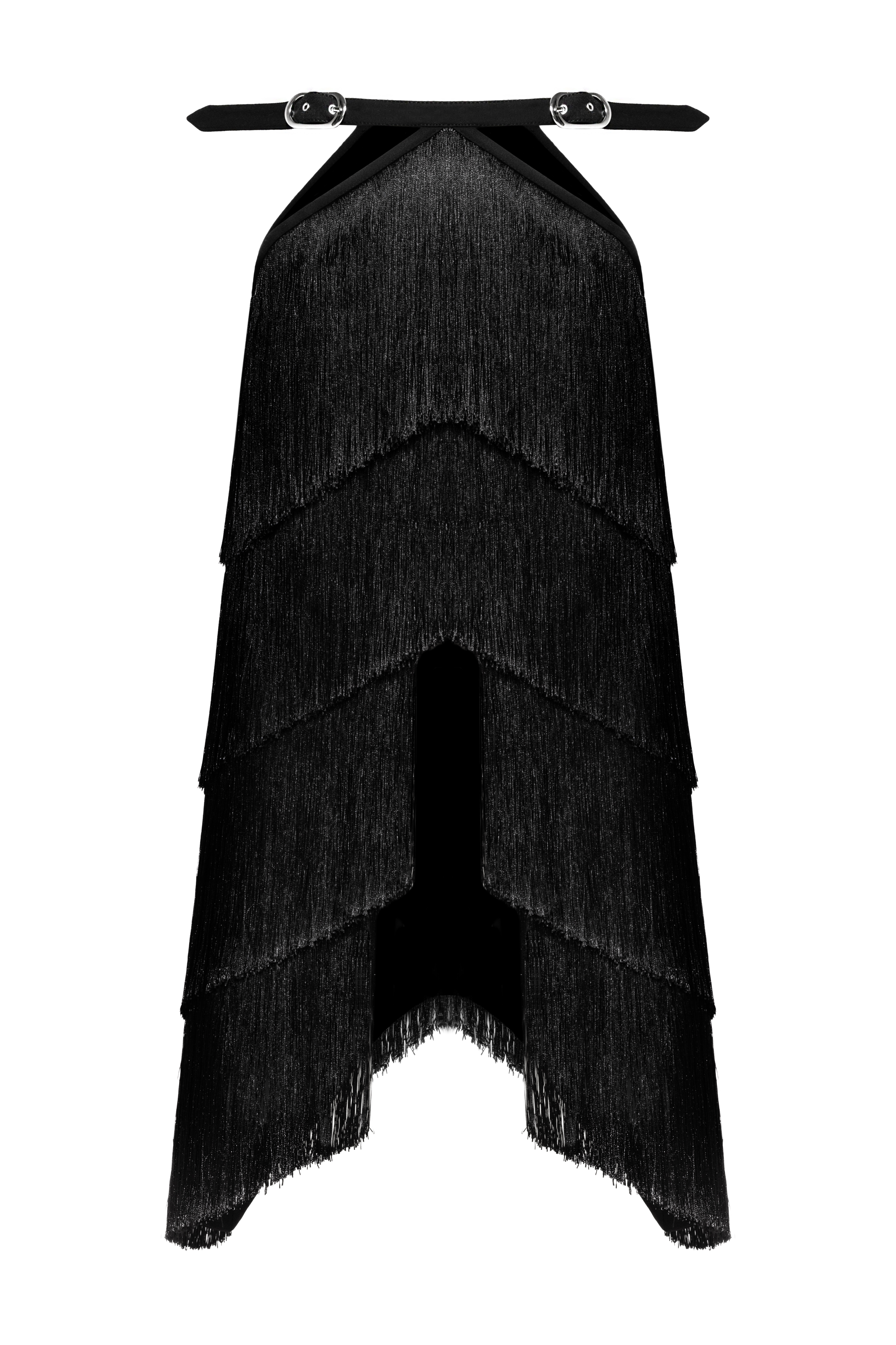 Elevate your wardrobe with this striking Reverse Fringe Skirt by Aleksandre Akhalkatsishvili. Designed with an eye-catching asymmetric cut at both the front and back, this skirt blends contemporary style with playful movement. The double belt straps along the waist offer a unique detail, while the concealed zipper fastening on the side ensures a sleek silhouette. Perfect for making a statement, this skirt is a versatile addition to any fashion-forward collection.