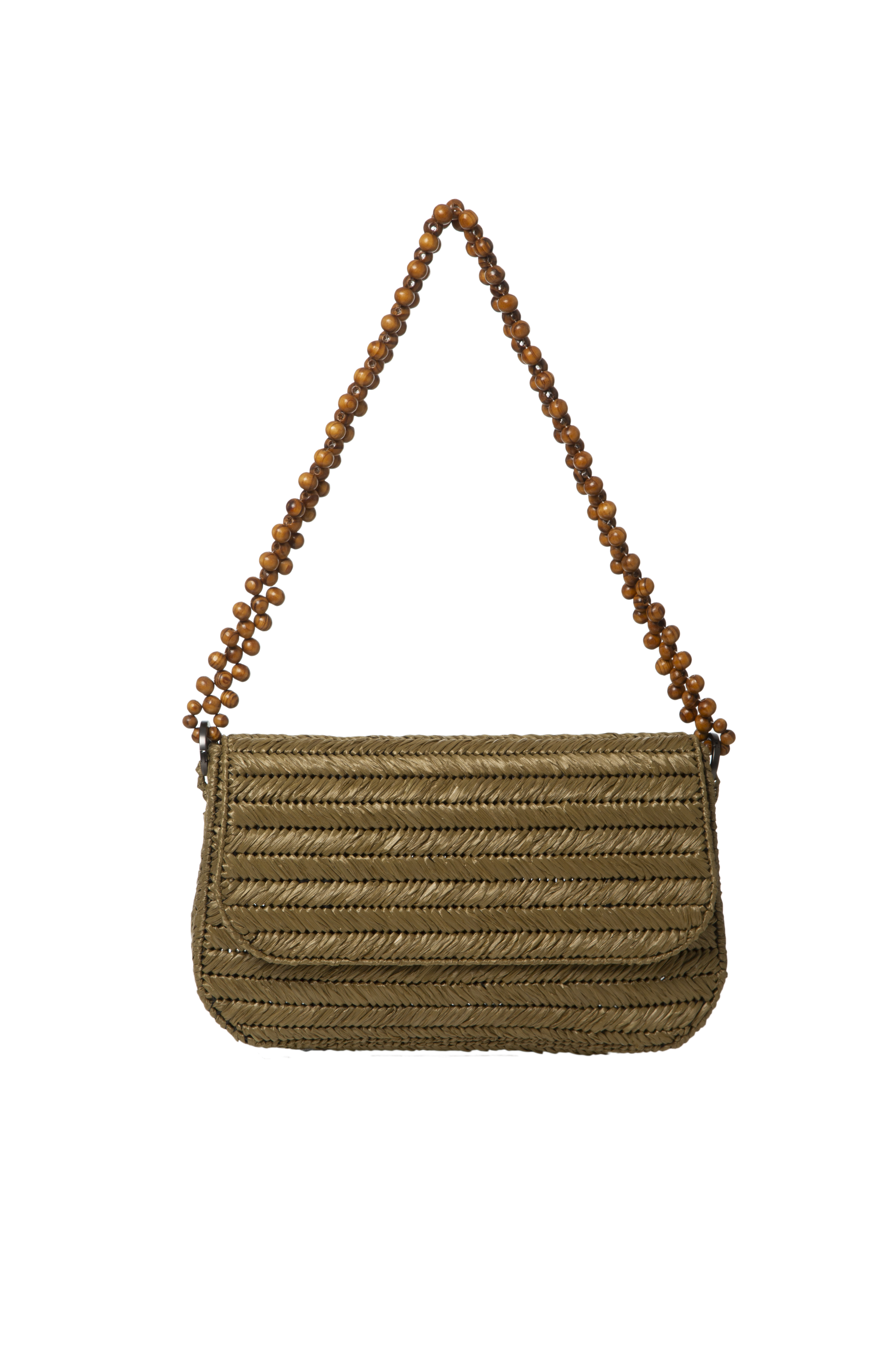 The Hazel shoulder bag by 0711 Tbilisi effortlessly blends natural craftsmanship with refined design. Featuring a handwoven raffia exterior, the bag is adorned with a wooden bead handle, offering a touch of organic sophistication. With its magnetic closure, this compact, stylish accessory is ideal for adding an elegant finish to your summer wardrobe. A perfect balance of function and flair, it’s a timeless addition to any collection.