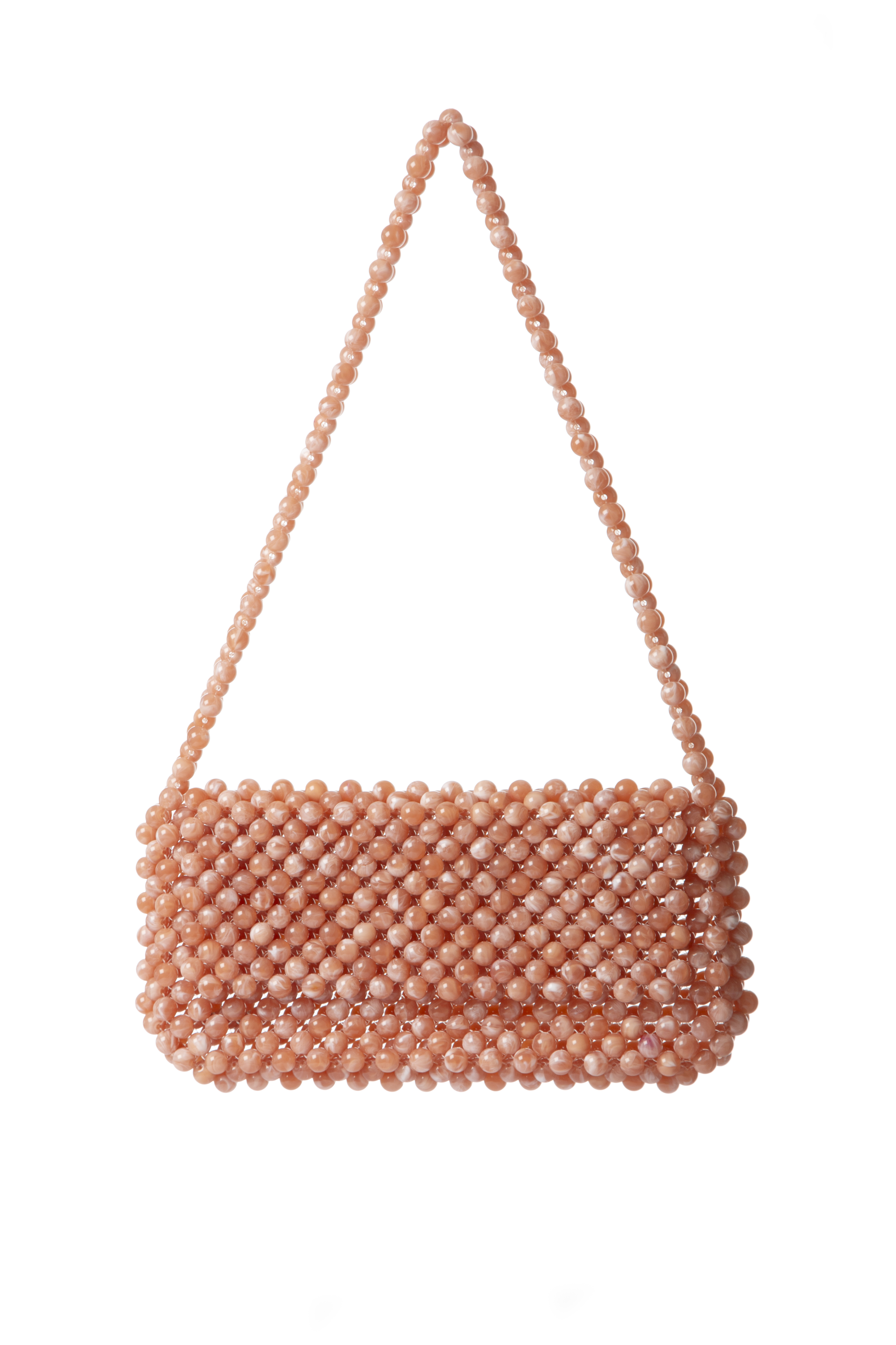 With a slimline silhouette and handmade beaded construction, 0711 Tbilisi's Clover Clutch instantly brings forward joyful effervescence and stays elegant at the same time. Adorned with an integrated top handle, the piece gracefully sits right above a shoulder and features a flap closure along with the interior providing enough room for all the essentials which can get the wearer through day or night time.