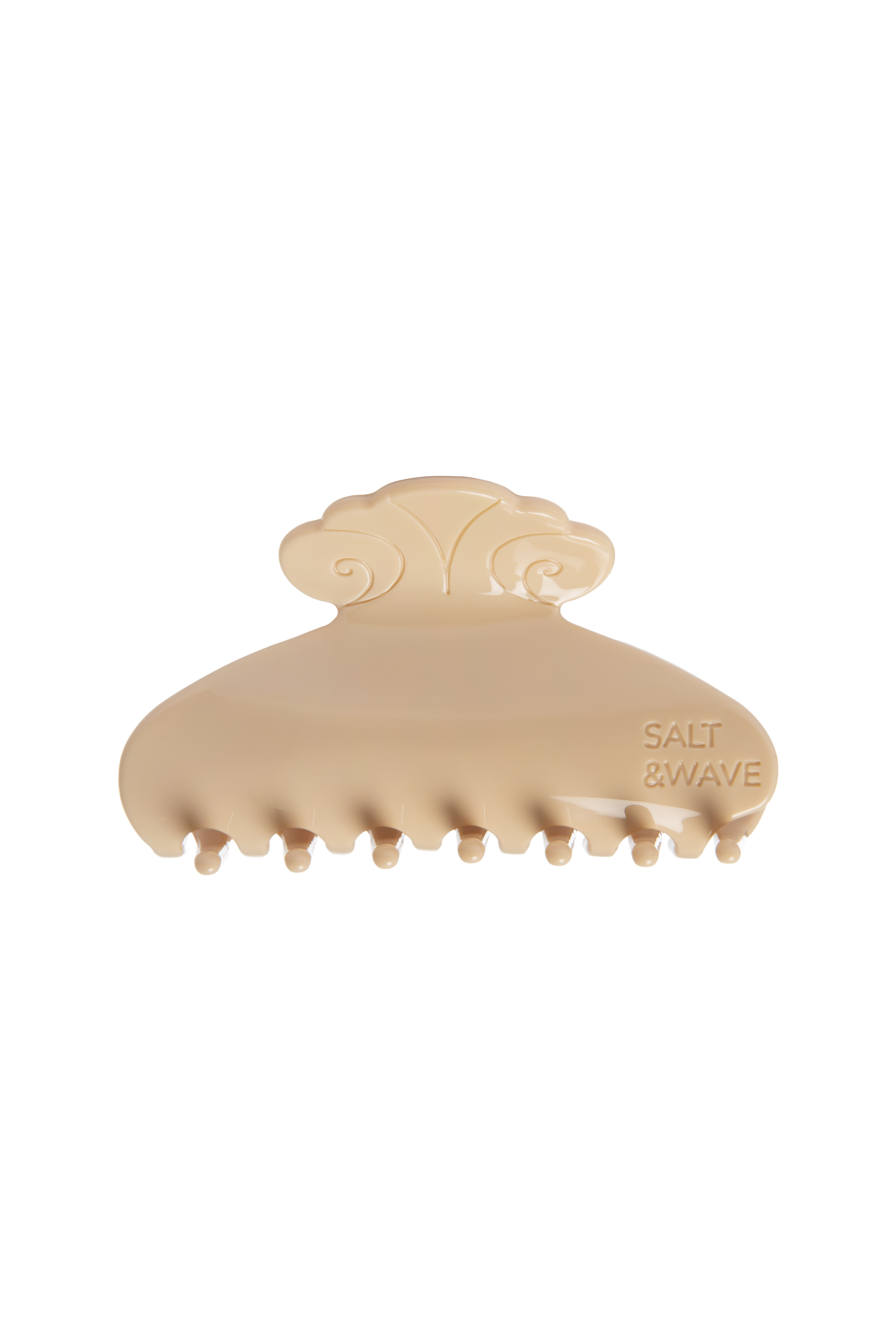 Inspired by 90s minimalism, Salt & Wave puts forward biobased hair accessories that are made from wood pulp-derived acetate. Each piece, Venus Clip in Nude, comes in novel, timeless shapes and sophisticated colorways that will freshen up daily or seaside edits.