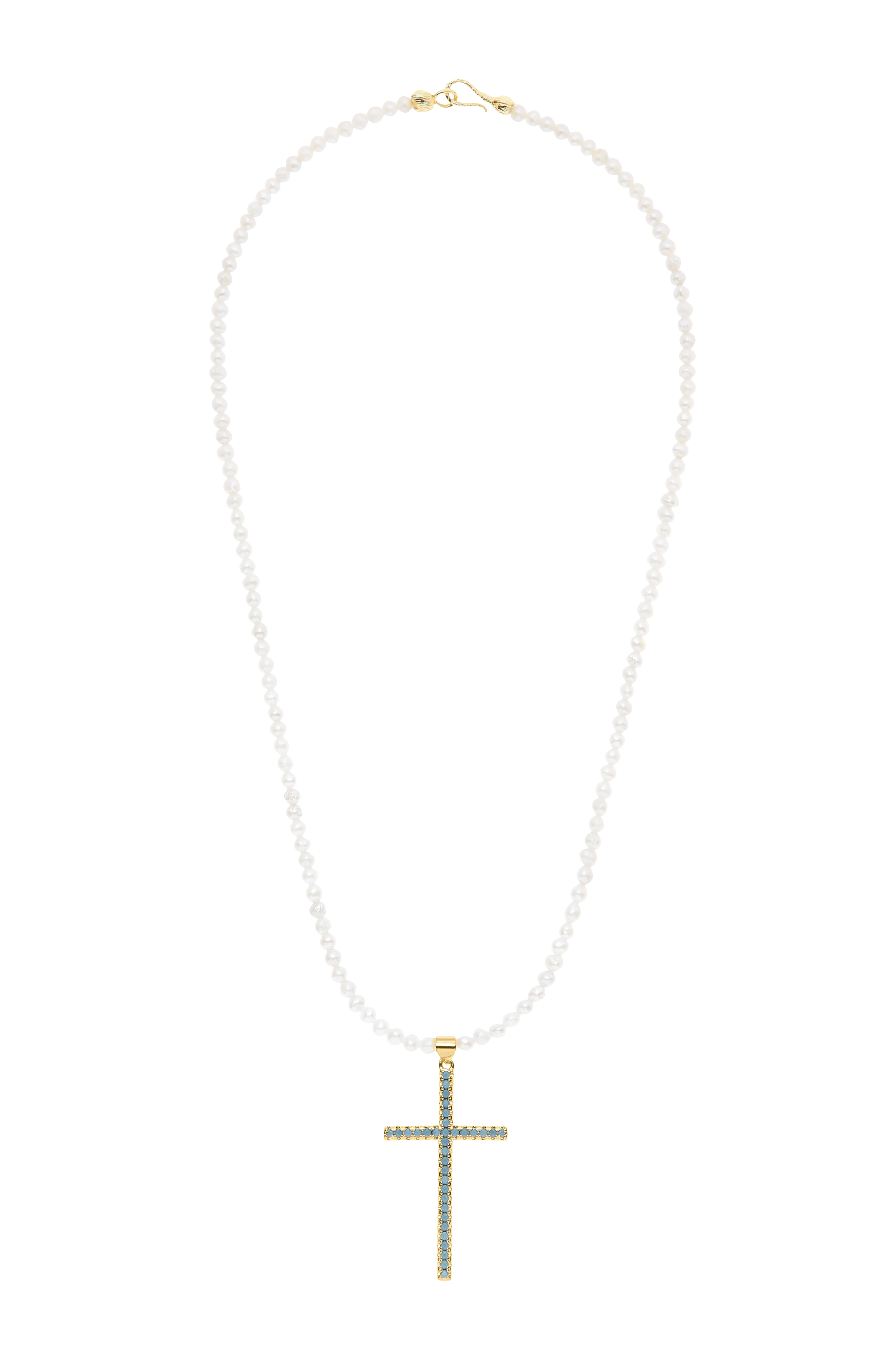 Pearl Necklace with Turquoise Cross