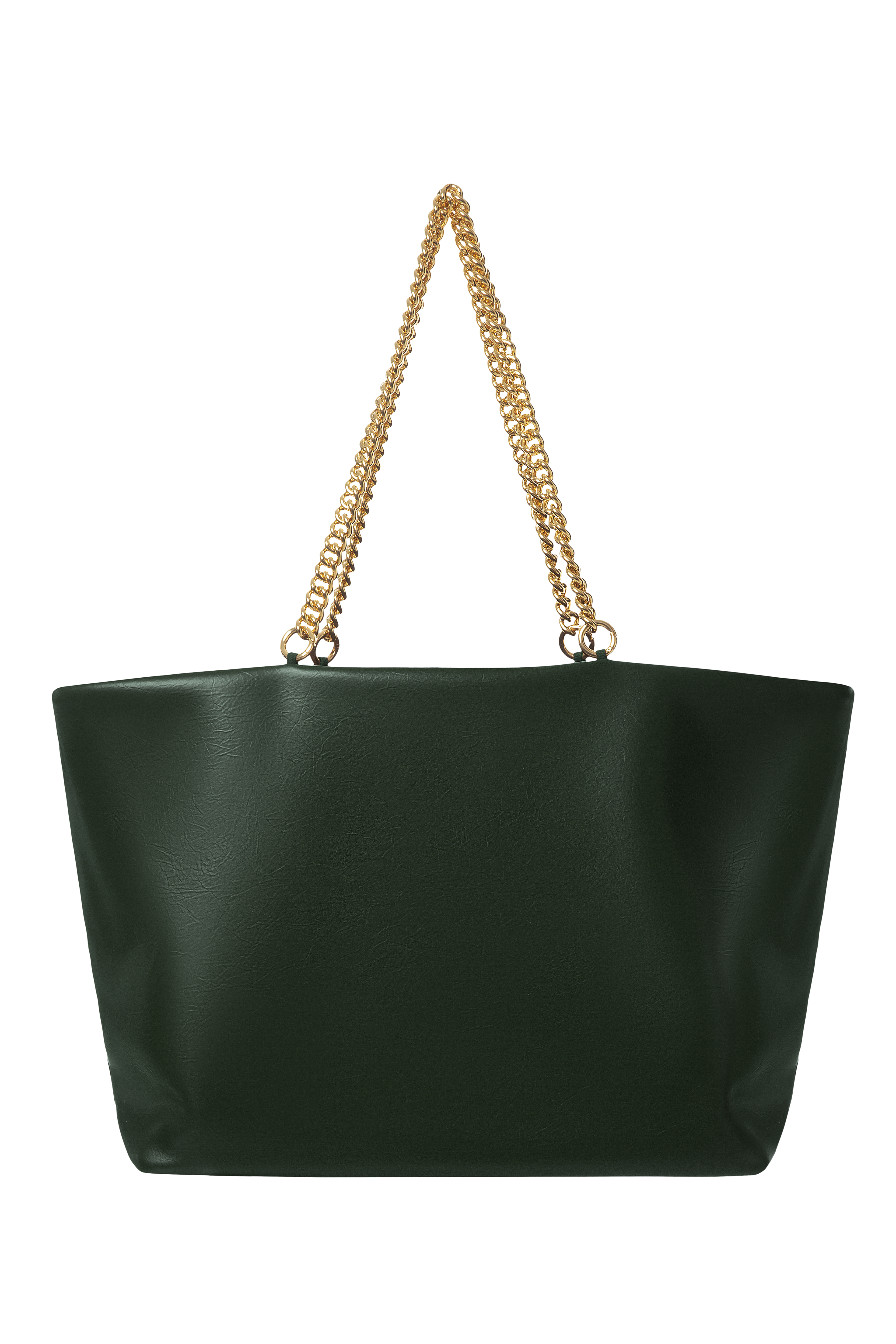 0711’s Autumn bag is crafted from deep emerald eco-leather in a softly structured silhouette. It’s finished with gold-tone chain handles and features an open top with an internal pocket for your essentials. A refined everyday option with a relaxed feel.