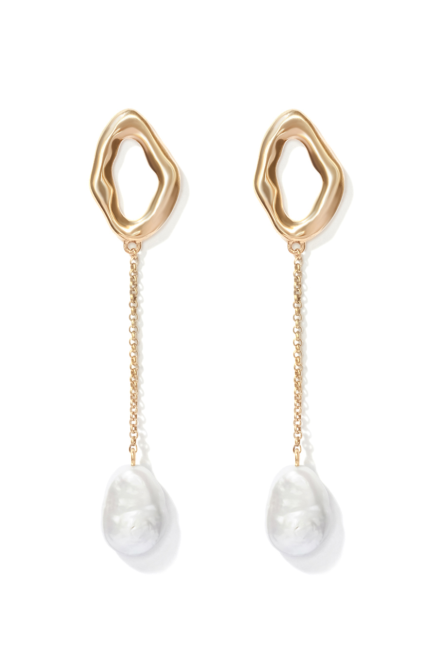 Gold plated brass earrings with baroque pearls and butterfly fastening.